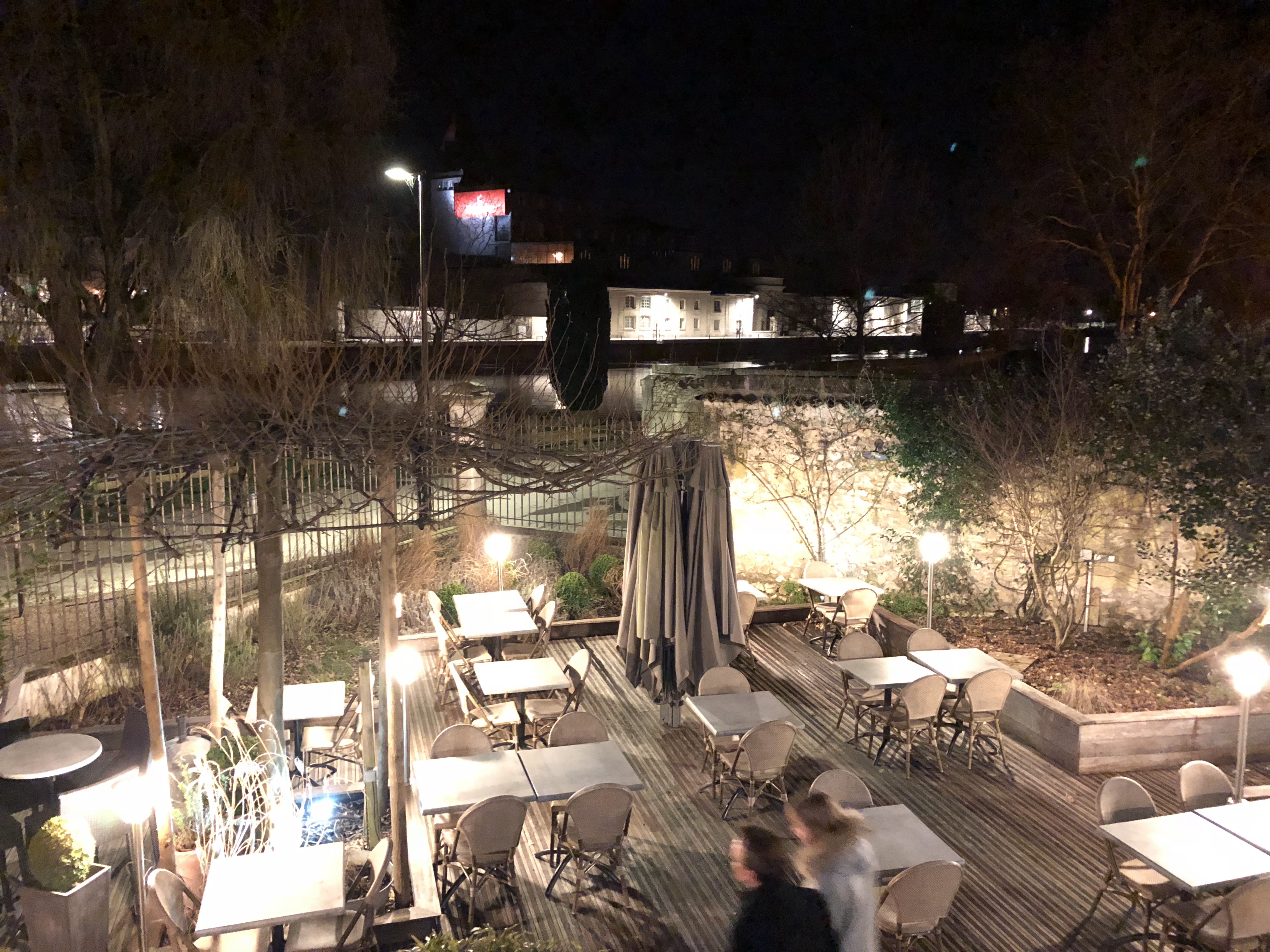 Jolie restaurant avec grande terrasse face à la Charente, cocktails et cuisine délicieuse et serveurs sympathique