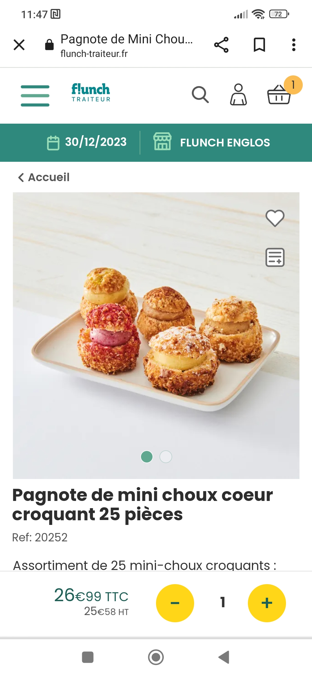 Flunch traiteur A FUIR ABSOLUMENT, mini choux ou plutôt Rikiki choux, une honte de servir ça a mes convives, sentiments de m être fait avoir 27€ pour ça . Service réclamations non conciliante, veux me renvoyer ce produit alors que je suis mécontente du produit je ne comprends pas. Le goût n est même pas au rendez-vous. Je suis sur qu'eux même ,ne les achete pas pour leur famille ou amis Vraiment mécontente Une étoile est déjà trop De plus une responsable du service devais reprendre contact avec moi, mais comme je n'y attendais personne ne le fait . Il ne prennent pas en compte leurs clients Première photo ce que j ai reçu contre celle du site rien a voir