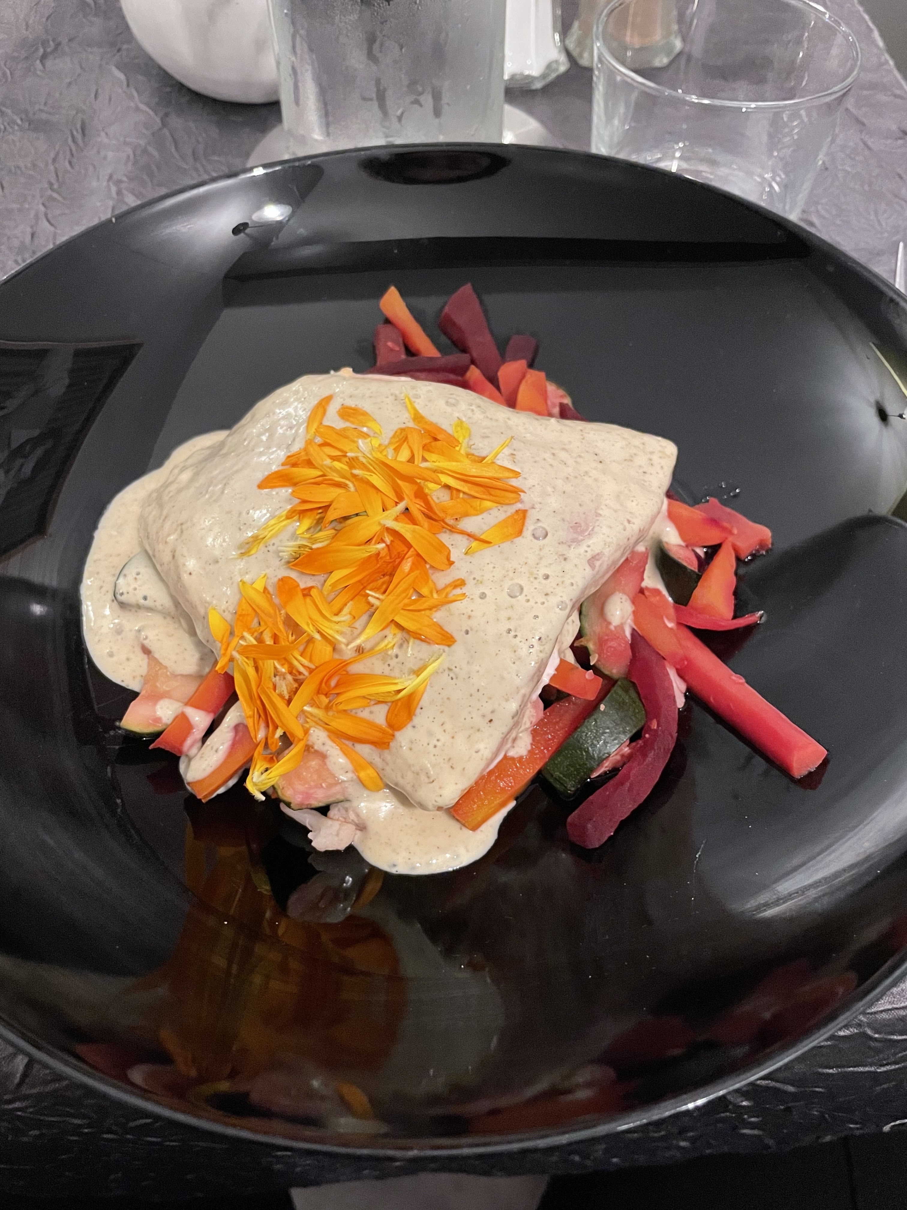 Très bonne cuisine des plats très raffinés une qualité toujours égale .