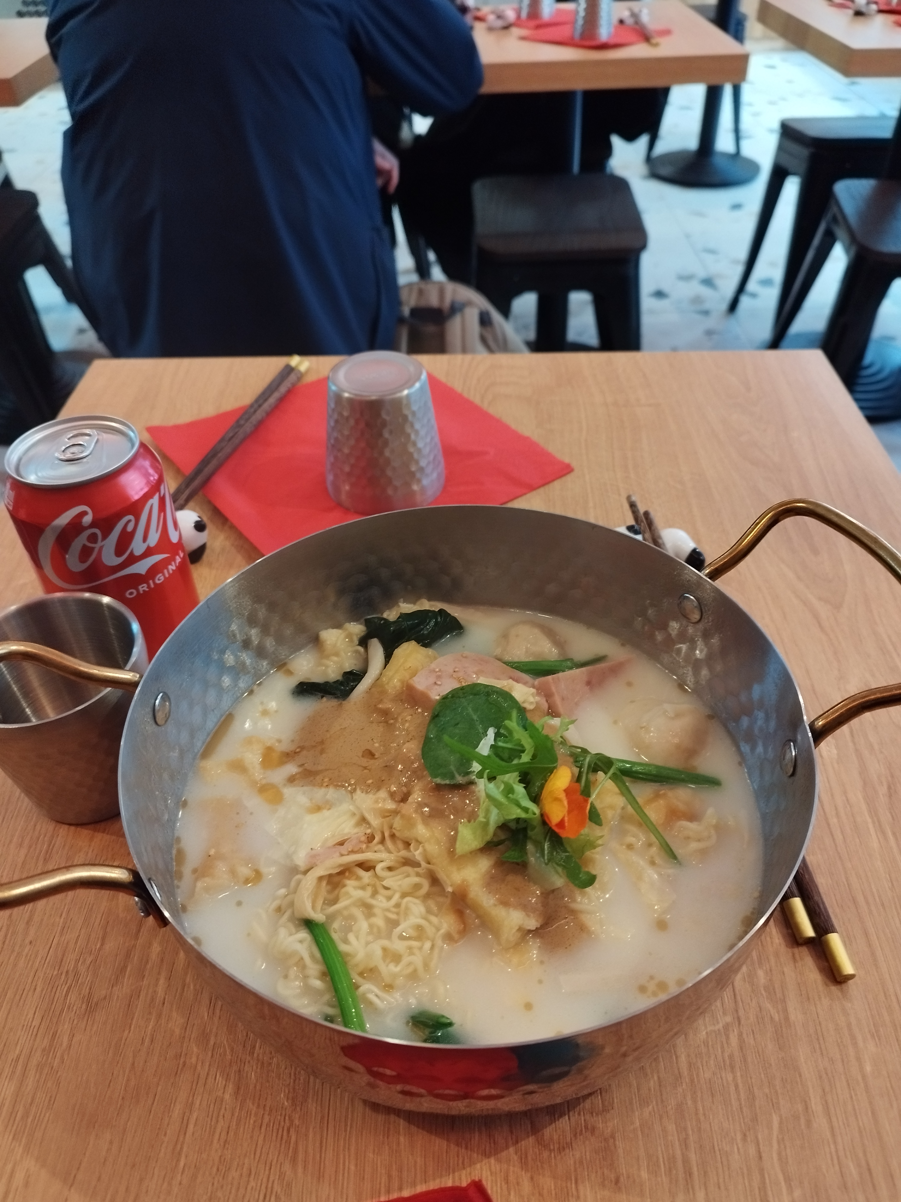 Première fois ! Après les explications données par le personnel d'une gentillesse extrême, nous avons pu composer notre repas. Beaucoup de choix en légumes et protéines. Attention a ne pas avoir les yeux plus grand que le ventre mais possibilité de prendre le reste a emporter. Différents bouillons aux choix. Personnel adorable et compétent. Lieu authentique qui me rappelle mes souvenirs d'enfance. Je recommande totalement, le concept est juste génial !