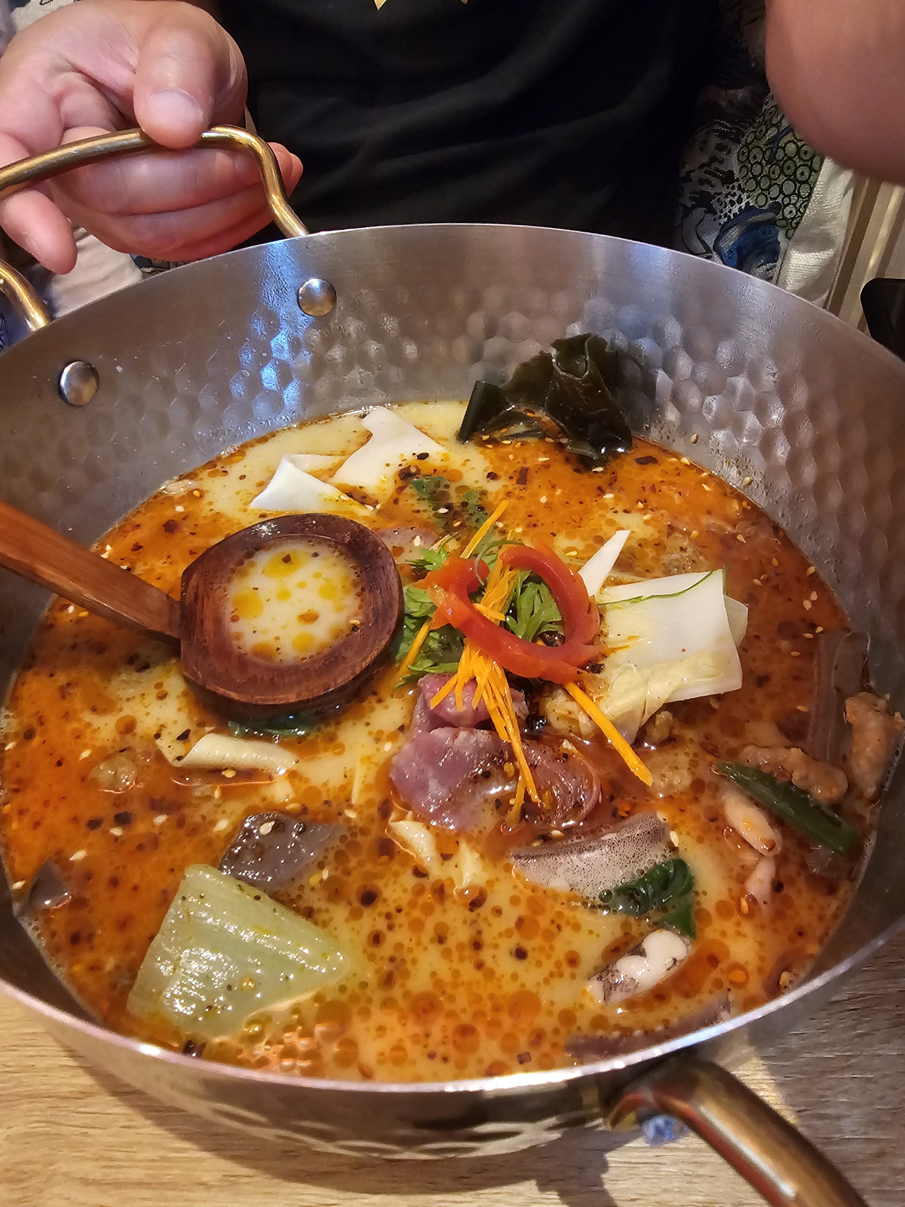 Trop trop bon, comme une fondue, j'en ai pour trois repas a chaque fois que j'y vais, le bouillon beurre de cacahuète est top !