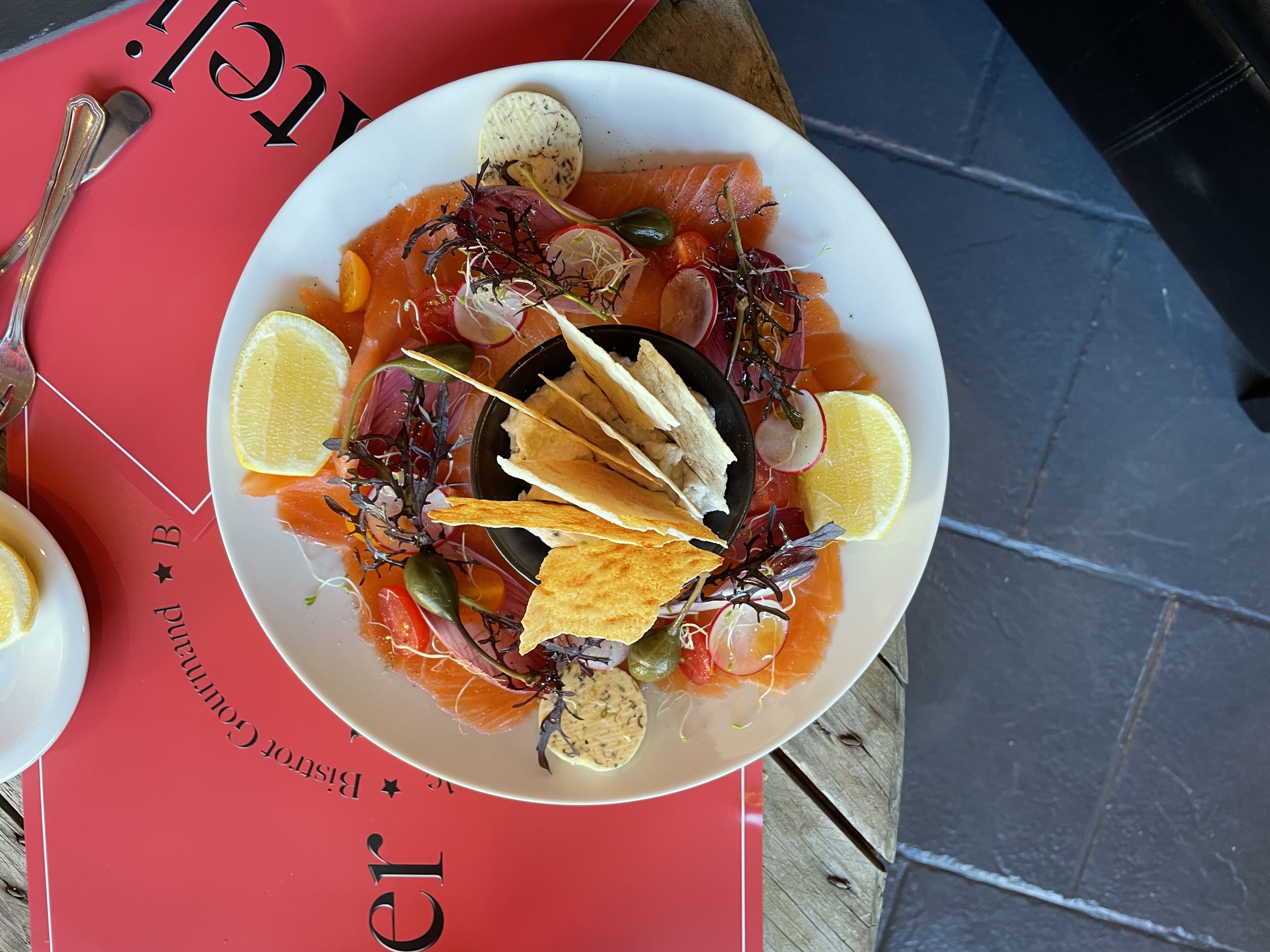 Lieu très sympa, cosy, chaleureux , très belle et bonne assiette avec des produits de qualité et cerise sur le gâteau petite terrasse extérieure .Merci Charley pour votre accueil , à consommer sans modération