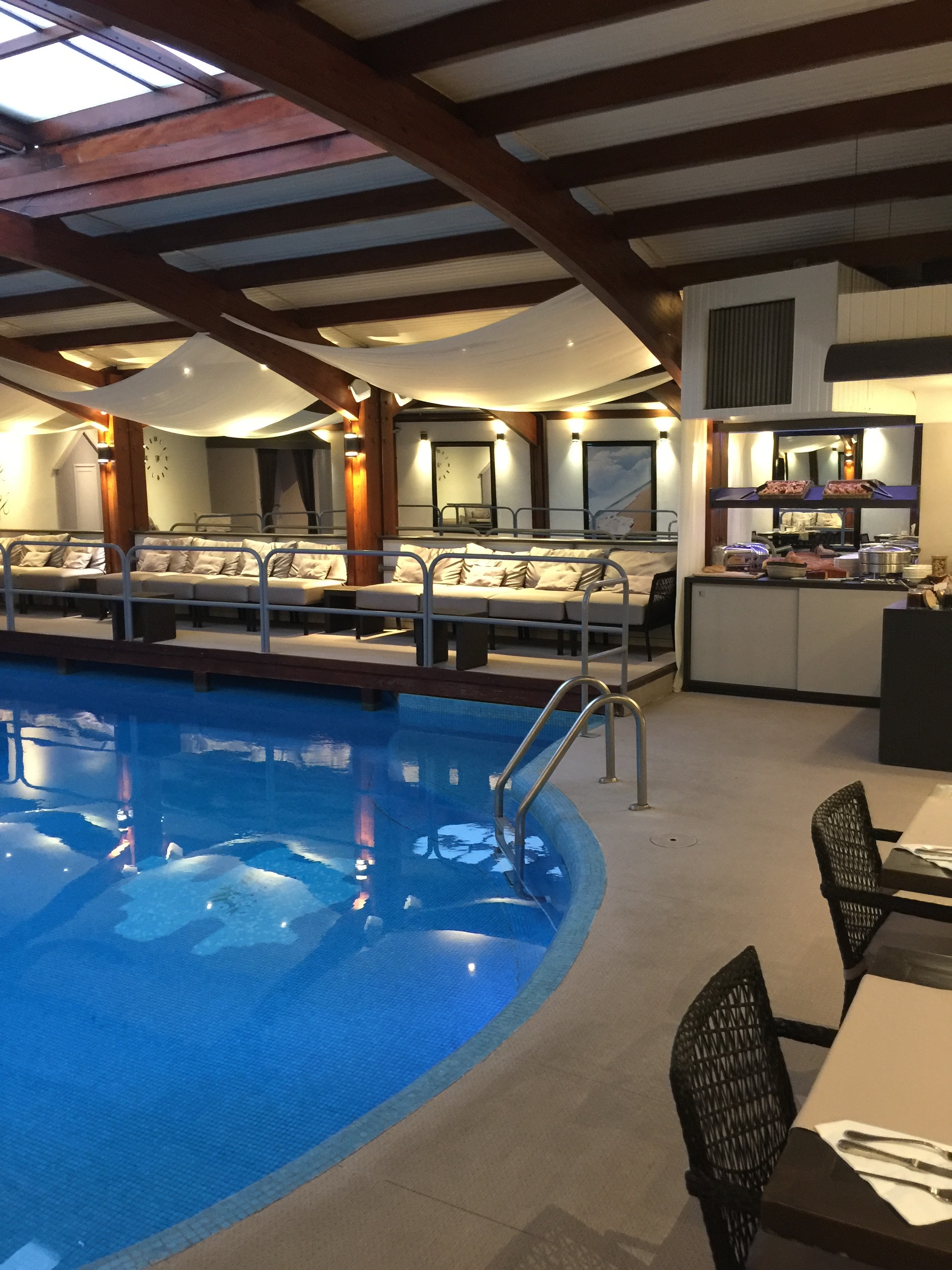 Nous avons passé 2 nuits dans cet hôtel. La piscine intérieur est magnifique Le dîner excellent Le petit déjeuner au bord de la piscine ou vue sur la mer très agréable Très beau spa Le personnel est très agréable. Je recommande cet hôtel.