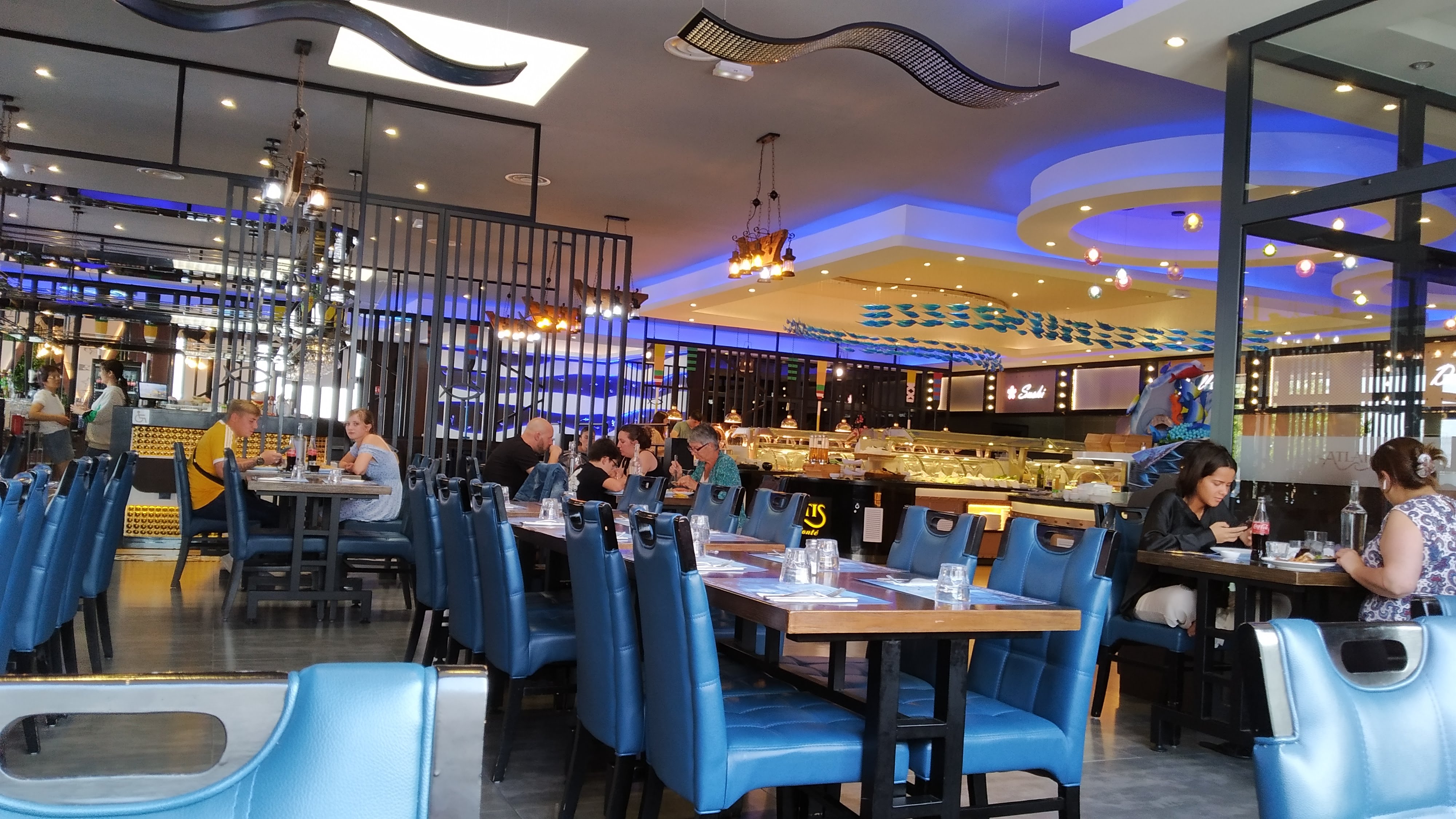 Bon restaurant à volonté On est dans une ambiance aquatique assez sympa, le service est rapide (pour les boissons). On se sert nous-même pour les plats, les viandes, les fromages et les desserts. Pour les boissons vous avez de tout, cocktails avec ou sans alcool. Bouteilles d'alcool, boissons soft.. Vous pourrez manger des crudités, des entrées froides, des terrines, charcuteries.. pour les plats vous avez de tout (samoussa, nems, poulet, porc au caramel, riz cantonais, nouilles sautées, saumon..) vous avez de toutes les viandes à faire cuire au wok, et de nombreux fromages. En plus des makis/sushi, et des fruits de mer ! Pour les desserts vous avez des beignets, des mousses (de toutes les tailles), des gâteaux, des bonbons et des fruits. J'ai beaucoup aimée, les plats sont bons certains de très bonnes qualités. D'autres sont clairement encore congelé.. et les desserts sont tous surgelés, le goût n'est pas à la hauteur sur cette partie là. J'invite également le personnel de nettoyage à se pencher sur la propreté des toilettes qui sont extrêmement sale ! Sinon je recommande ce restaurant. Vous y mangerez bien. J'ai beaucoup apprécié ! Je reviendrais.