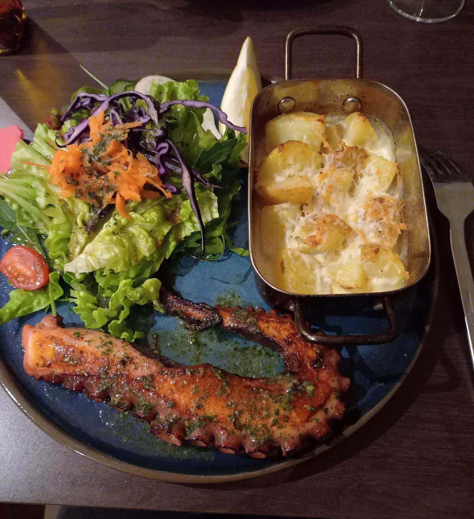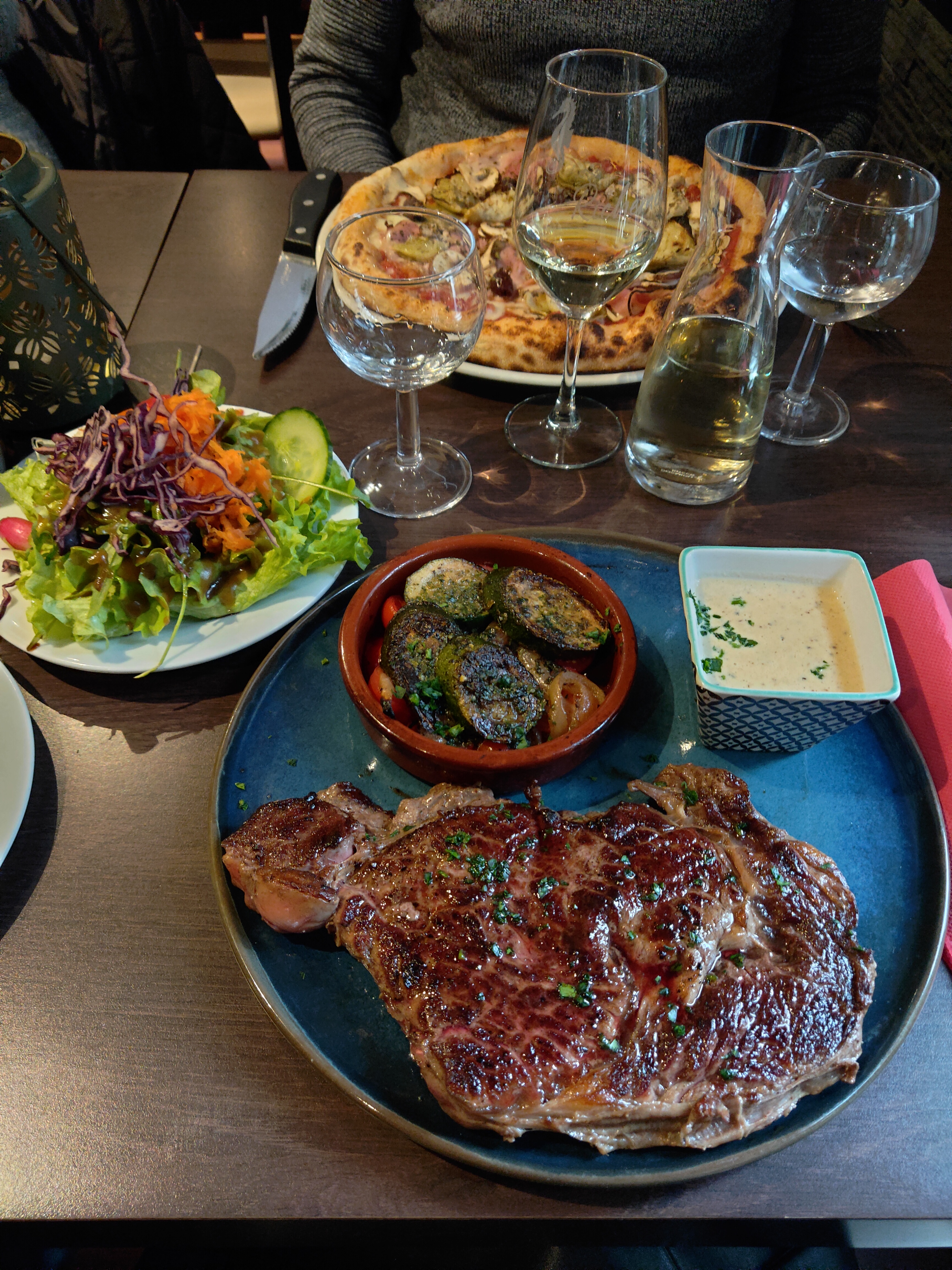 Pulpe, tartiflette, steak… pizza pour moi avec du vin local 👍Le choix la qualité et des patrons 👫 sympa ! Merci 😊