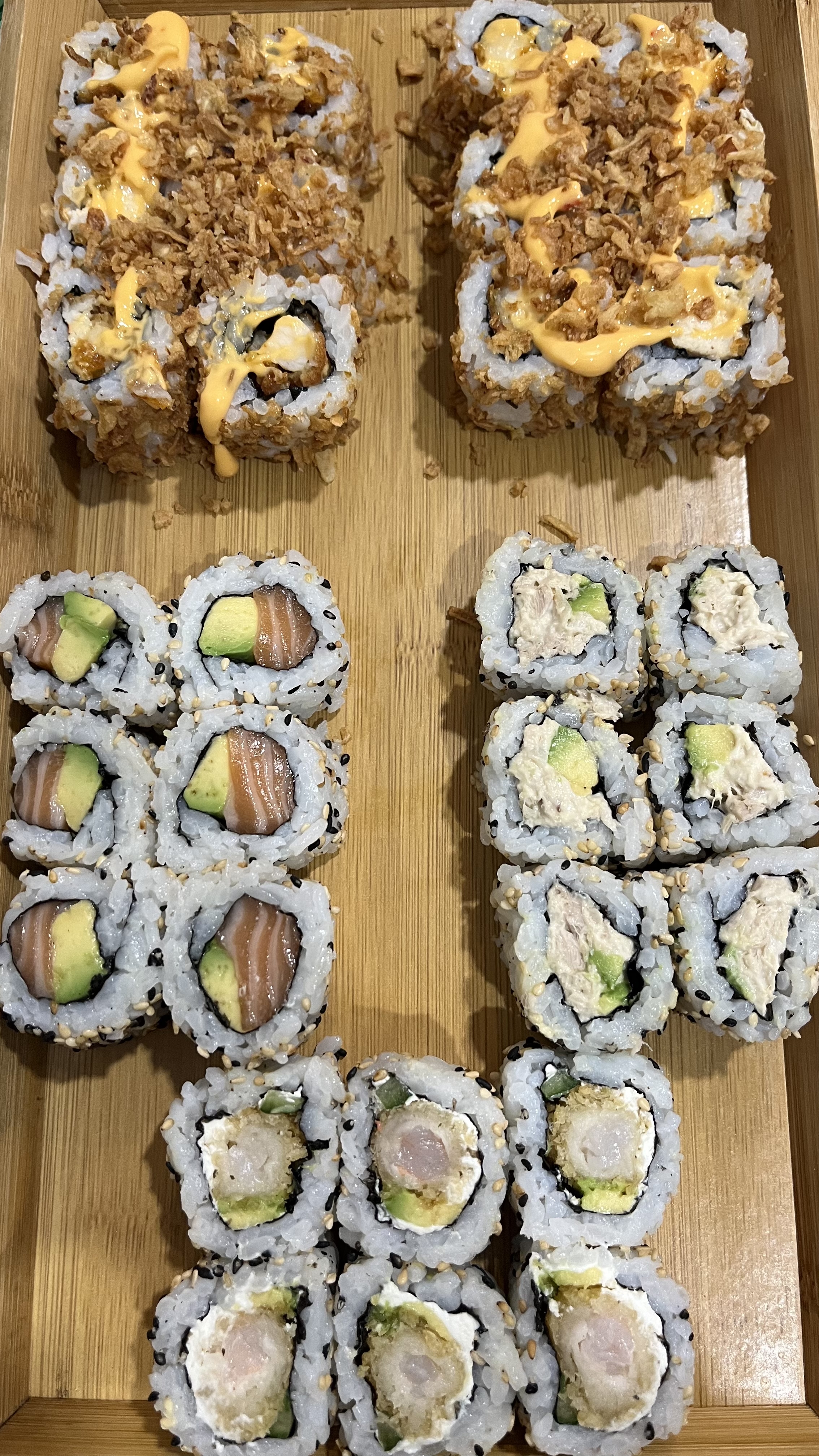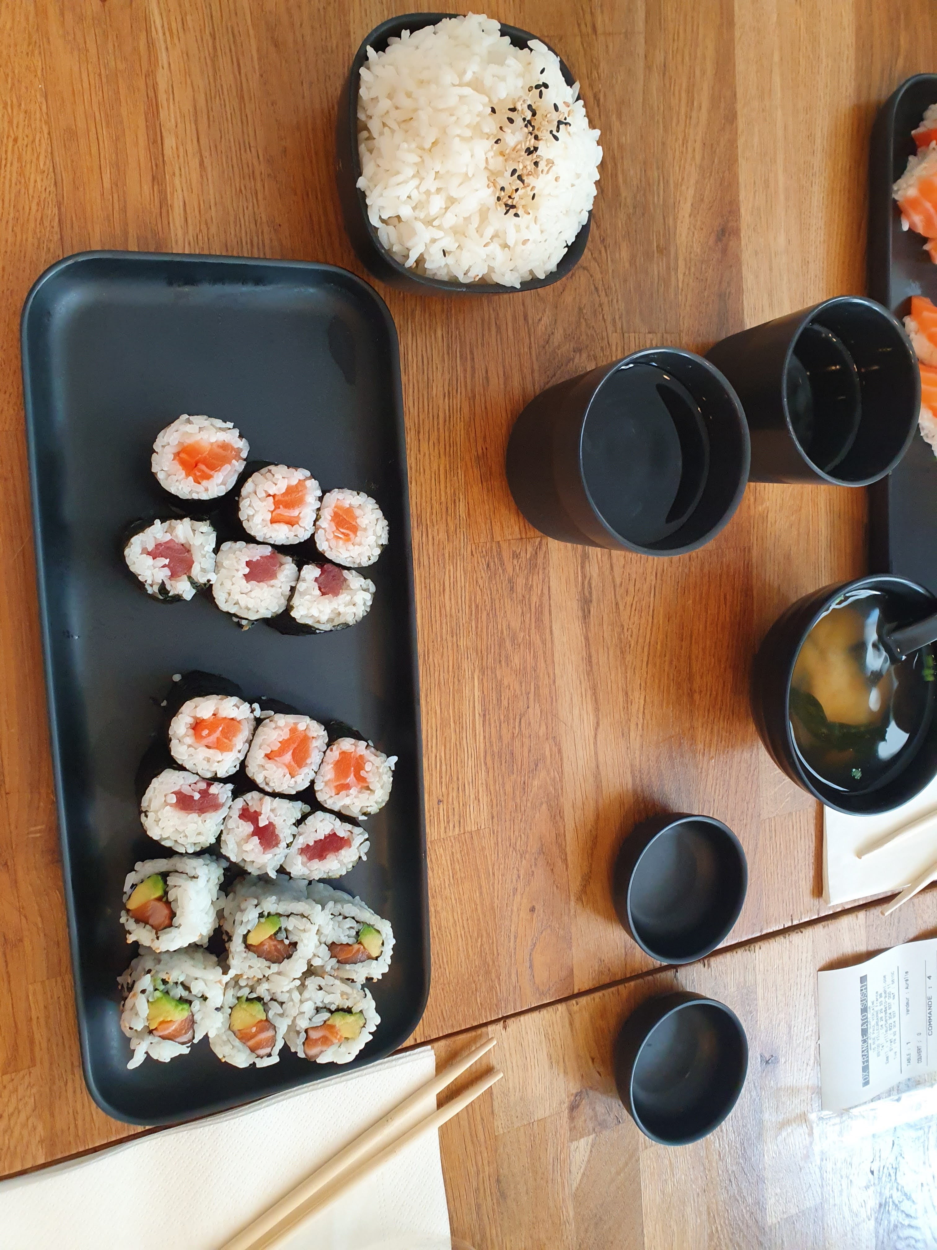 Un vrai régal ! Nous avons pris les sushis, les sashimis et les California roll. Le plateau 36 pièces pour 3 personnes à 2! ( On est gourmand de sushi par ici) Le riz était cuit comme il faut, le saumon était délicieux et bien frais. Il y avait suffisamment de sauces sucrées, salées ou de Wasabi. On commandera de nouveau !