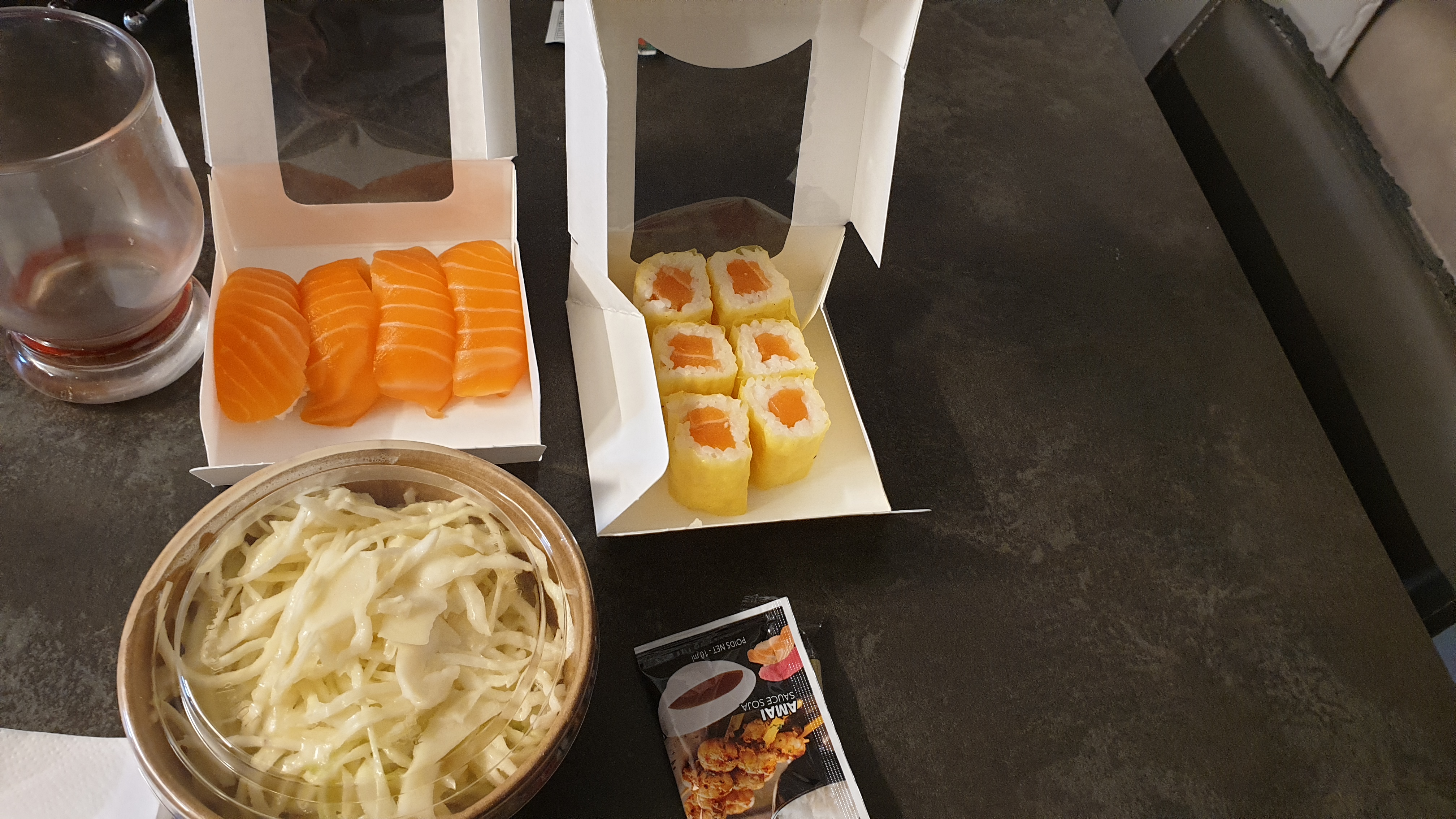 Commande faites sur place nous avons attendu que 10 minutes. Le personnel est sympa et souriant. Les sushis sont succulents (petit bémol sur le riz un peu sec à mon goût), le saumon est de très bonne qualité. Nous en avons pour notre argent, les quantités sont généreuses. Je recommande vivement ce restaurant !!