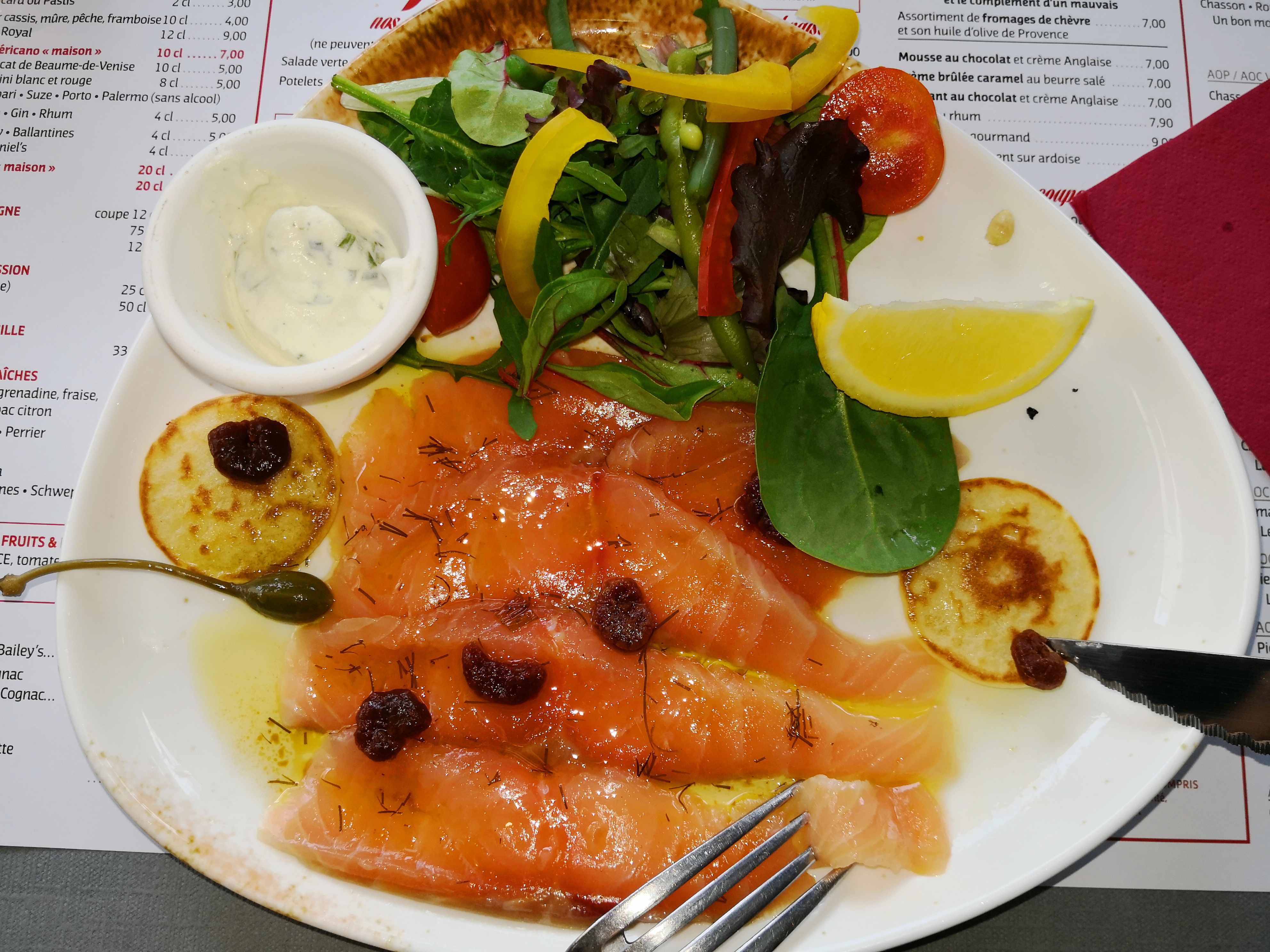 Terrasse ombragée très jolie, les plats sont copieux. Le saumon gravlax juste parfait...le vin conseillé très bon. Un beau moment en couple en ce qui nous concerne.