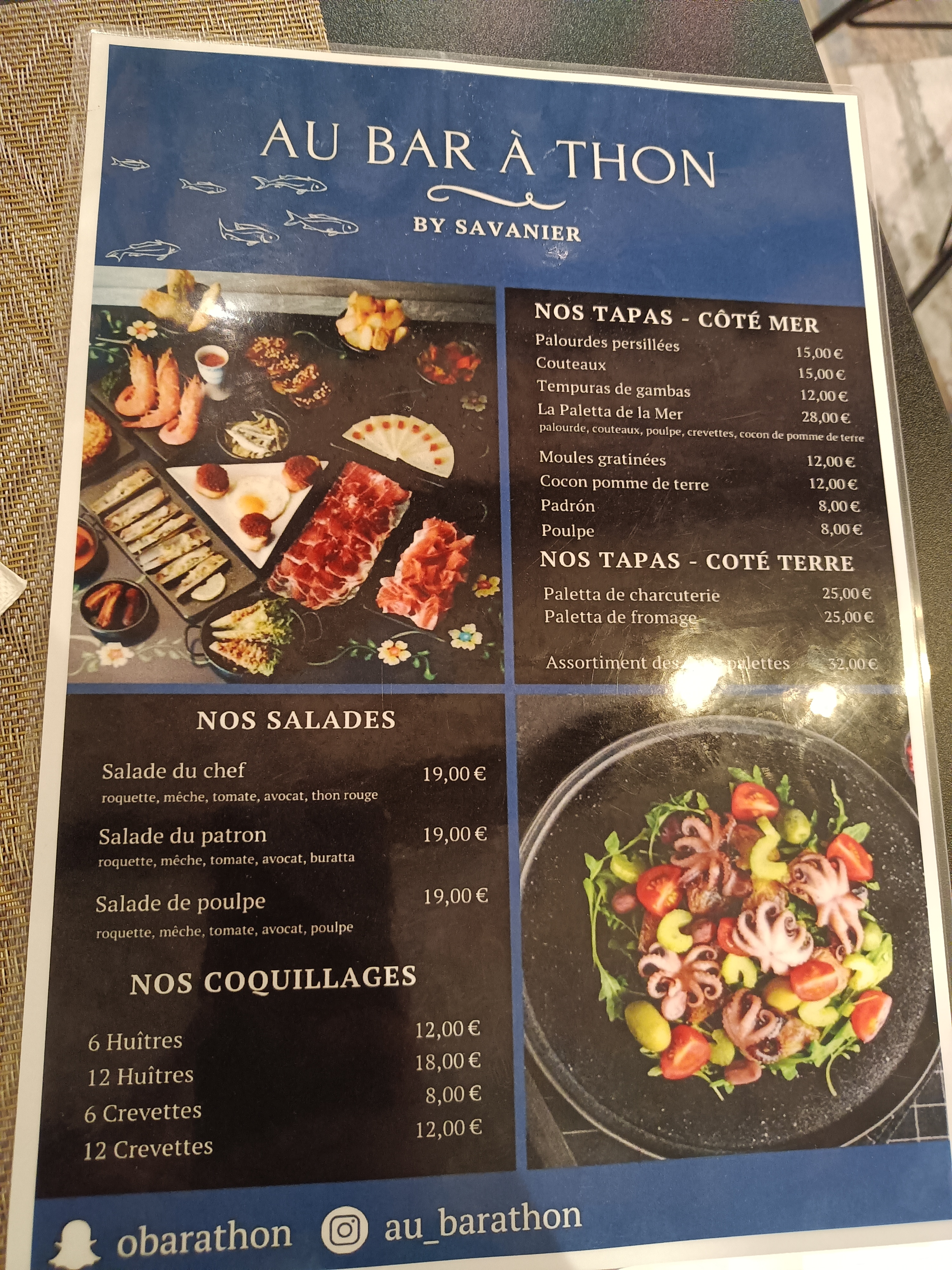 Je viens régulièrement. Super découverte, qualité prix, j'ai opté pour un Quatuor de thon vraiment délicieux et frais. J'ai également testé les pattes au thon et mes enfants les menus mathelot abordable et copieux. L'accompagnement vraiment top. Je recommande la purée de patate douce et frites maison. Service agréable. Bel établissement. Restaurant avec musique de fond agréable. Merci à bientôt