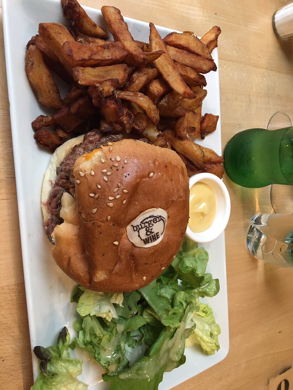 Très bons burgers et bagels. Personnel sympathique, service rapide. Nous y sommes déjà allés plusieurs fois et n'avons jamais été déçu. Les mauvais avis que j'ai pu lire ne sont pas représentatifs de notre expérience chez Burger & Wine Je recommande