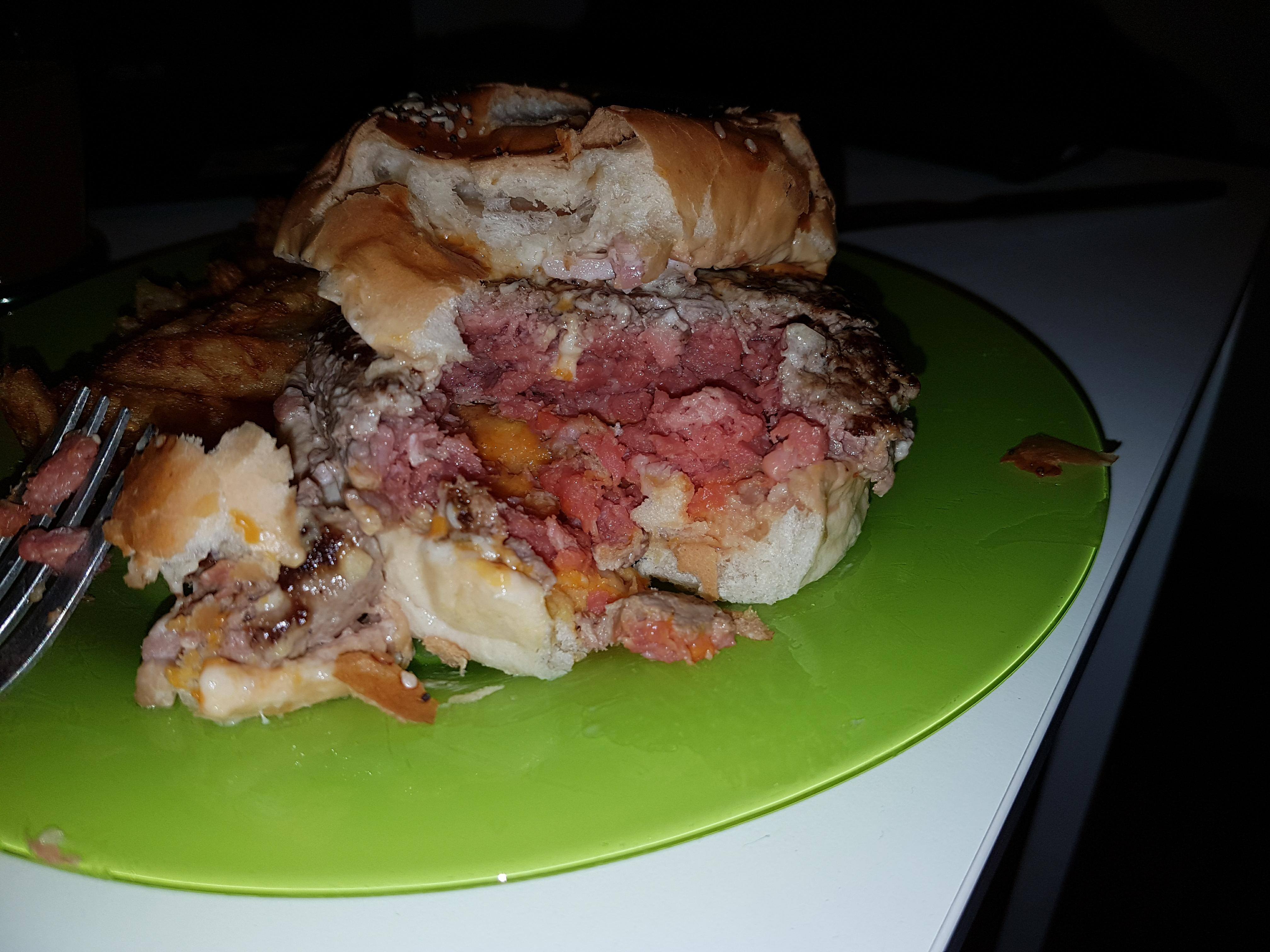 J'ai commandé le burger Franc-Comtois sur Deliveroo et voici ce que j'ai reçu. De la viande crue. Pas seulement saignante, crue. Froide. Au moins la livraison était rapide... Pas de compensation de la part du restaurant. Ils m'ont conseillé de demander une compensation à Deliveroo parce qu'il n'y a pas l'option de choix de cuisson au moment de la commande. Le minimum serait peut-être de faire cuire le steak et les lardons ?