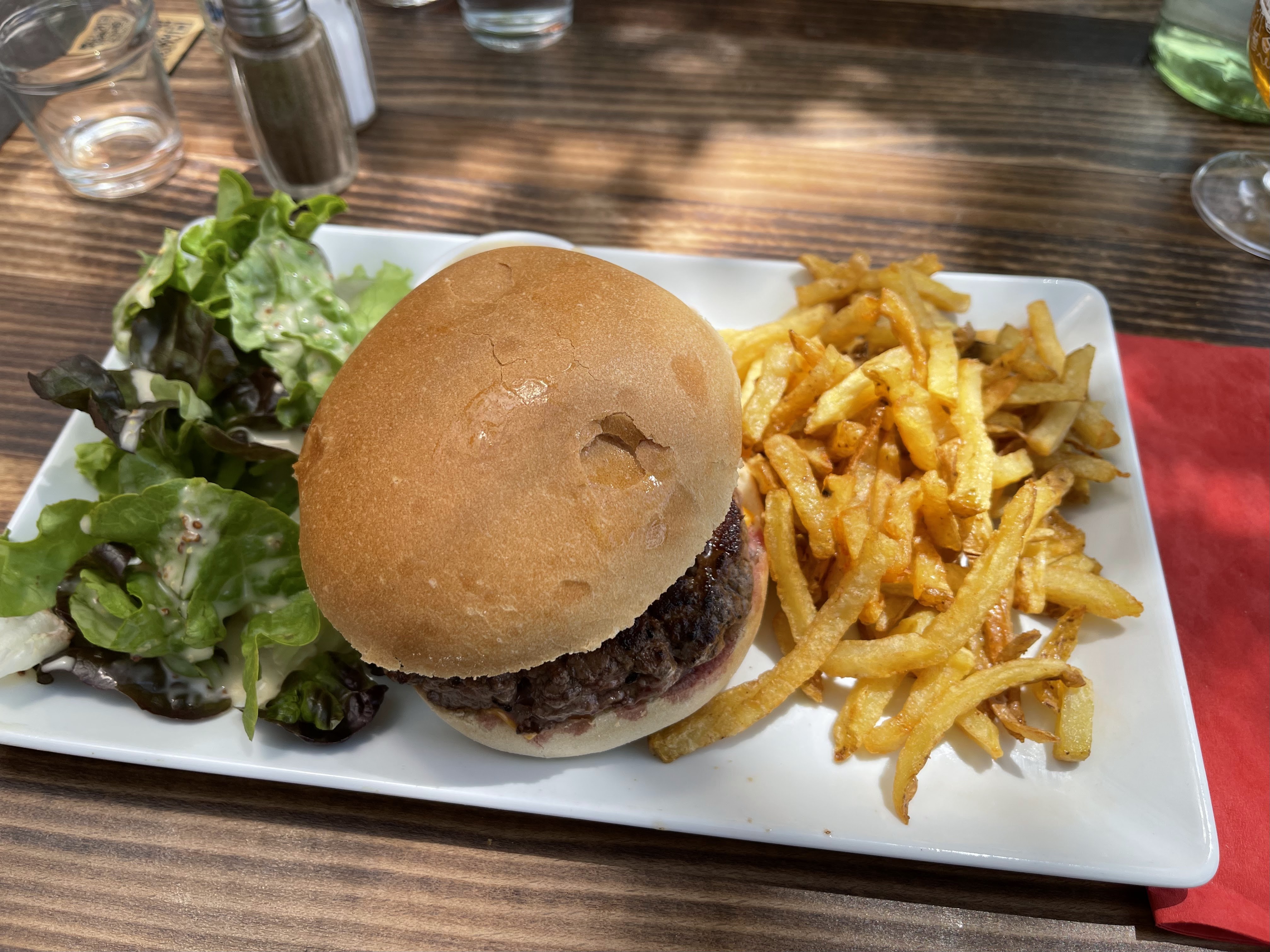 Burger bon avec du pain de bonne qualité, les ingrédients sont biens choisis, un peu cher mais rattrapé par la gentillesse du personnel et la belle vue.