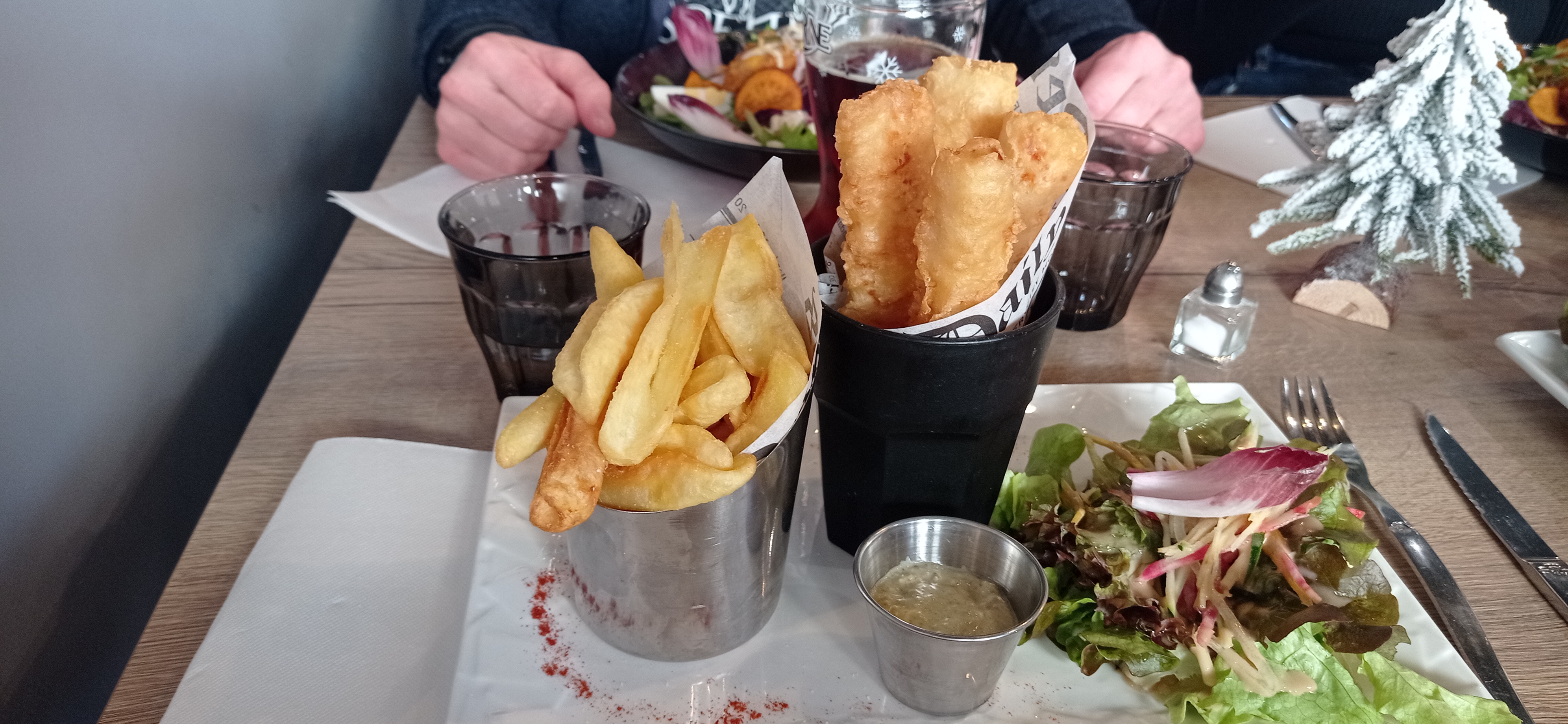 Accès pmr handicapés ♿️ Bcp de parking proches Très bien manger. Un fish and chips au top. Même servis à 13h30, très apprécié. Merci de votre accueil.