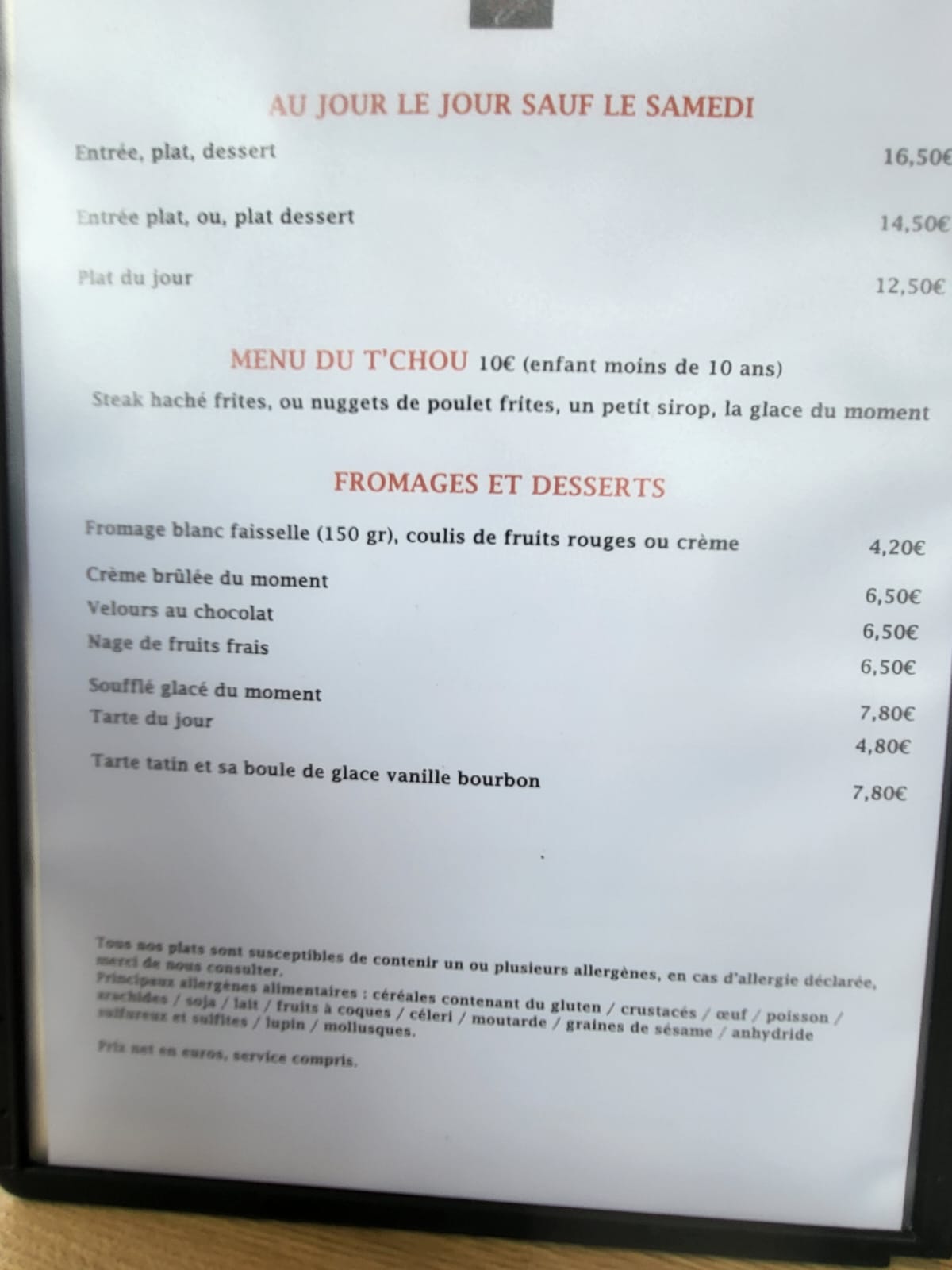 Une carte simple mais de très bonne qualité Une très belle terrasse Et le patron et la patronne et bien entendu la serveuse sont top Durant tout mon séjour ( 2 mois) jamais déçu Aussi bien les repas que l’accueil Le jurassien