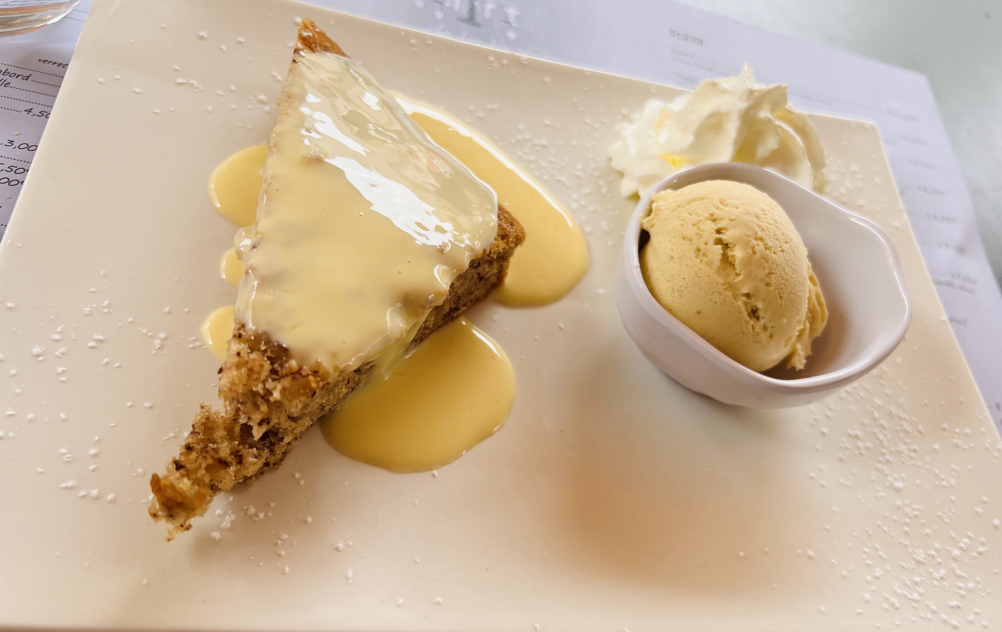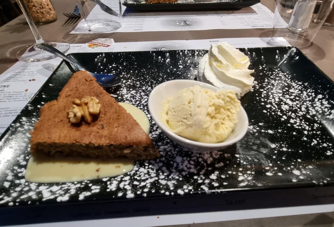 Personnel accueillant, très bien déjeuner, un cassoulet au top avec 2 cuisses de canard et un haut de cuisse le tout confit accompagné d’une saucisse délicieuse et de ses haricots. Et servi bien chaud de plus. Les filles plus raisonnable on pris pizza. Très bonnes aussi. Je recommande vivement. Et nos deux chiens acceptés