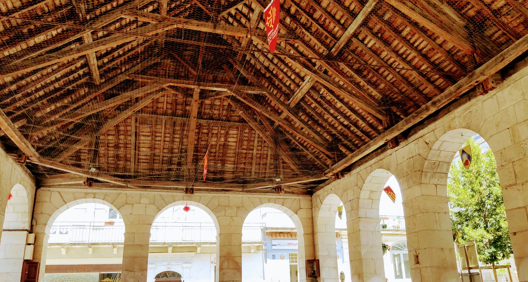 En retrait de la rue principale, terrasse calme devant ou sous la halle, nous avons bu un très bon café...