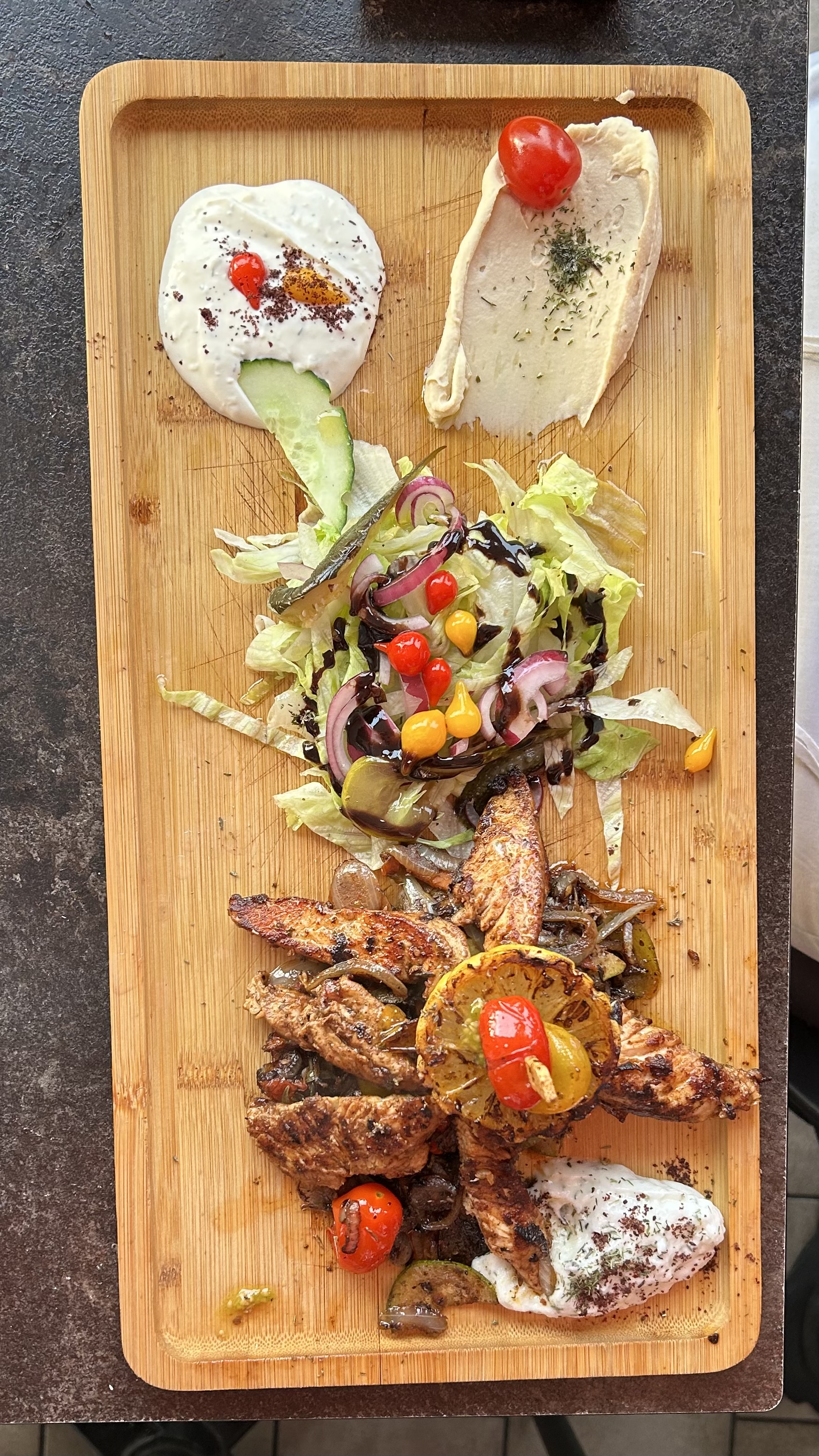 Un véritable delice, j'ai pris chich taouk poulet et mon mari chich taouk de thon et c était tellement parfait. Ces 2 plats nous font voyager, l odeur , les épices, le hummous maison franchement c est une dinguerie!!! La cuisine est ouverte le service impeccable merci pour ce voyage gustatif
