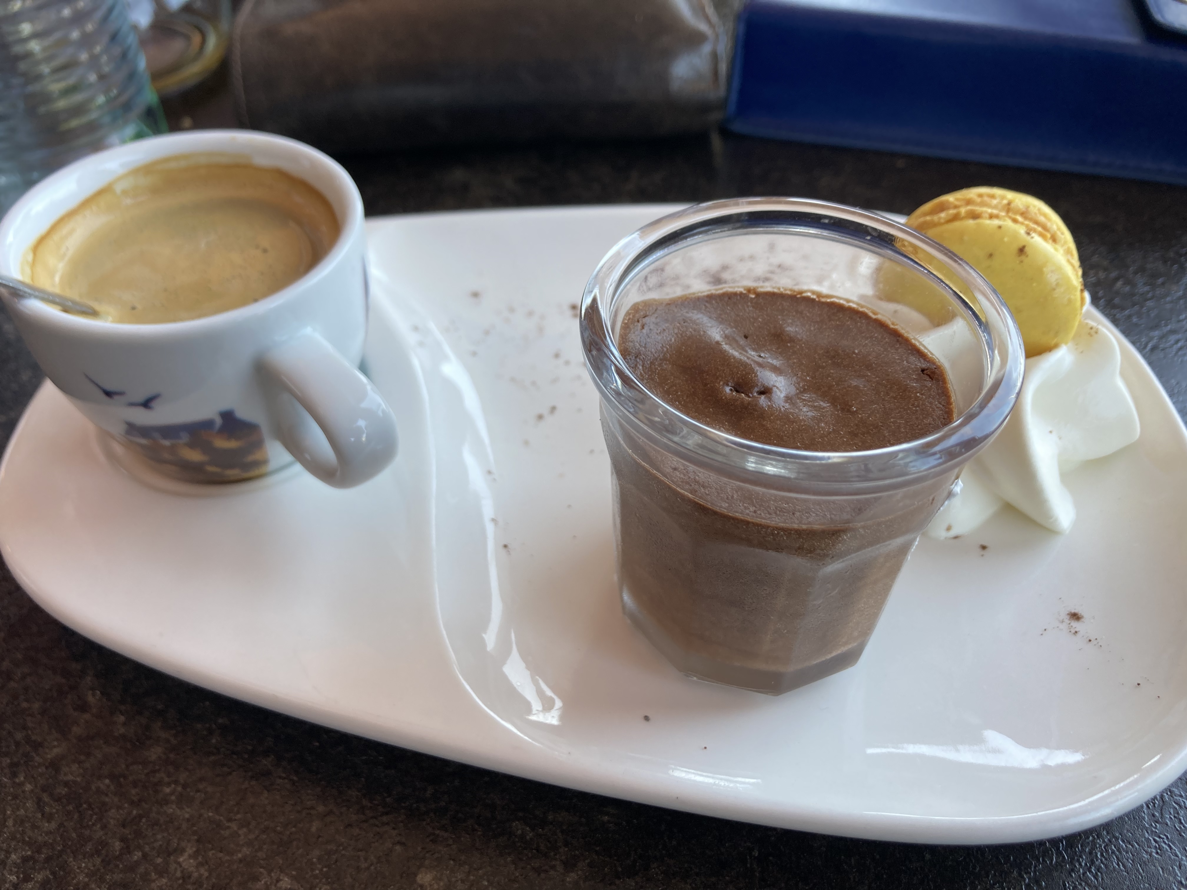 Crêpe chocolat ou banane noyer dans le beurre pas agréable de plus personnel pas très agréable et non souriant. Le seul point positif c est juste le cadre en terrasse avec vue sur le port.