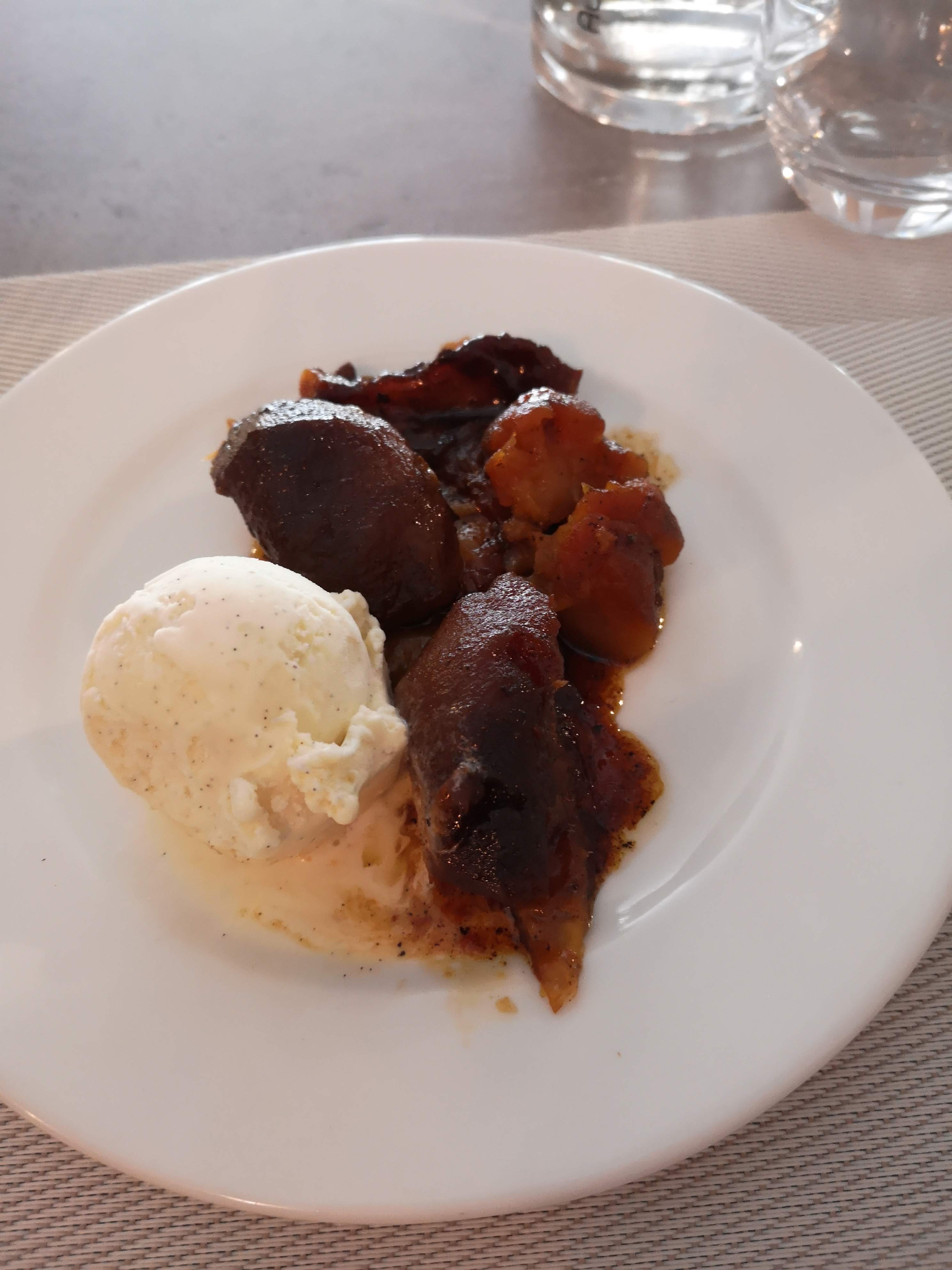 Un peu déçue lors de mon dernier passage pour un dîner, le dessert sablé breton accompagné de pommes poêlées = présentation minimaliste (pas de présentation en fait) juste un fin sablé et 3 tranches de pommes posées dessus à la va-vite...8 € tout de même, cela ne les valait certainement pas Dommage, mais rien à redire sur le reste du dîner