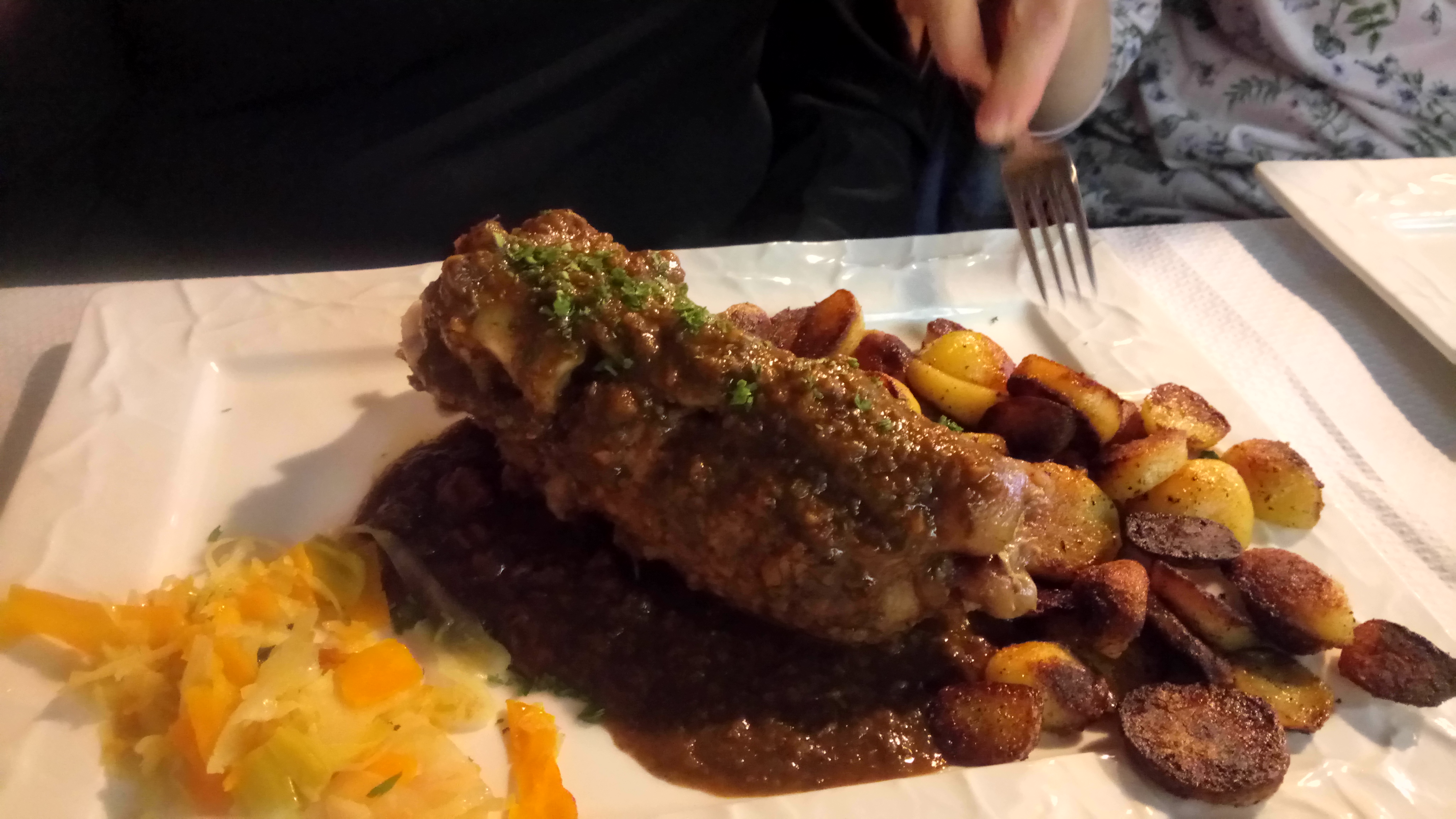 Excellent rapport qualité prix avec Groupon. Le restaurant met en avant les Fleischschnakè fait maison et les pieds de porc farcis. Nous avons choisi les Fleischschnakè qui sont copieusement servis et excellent.