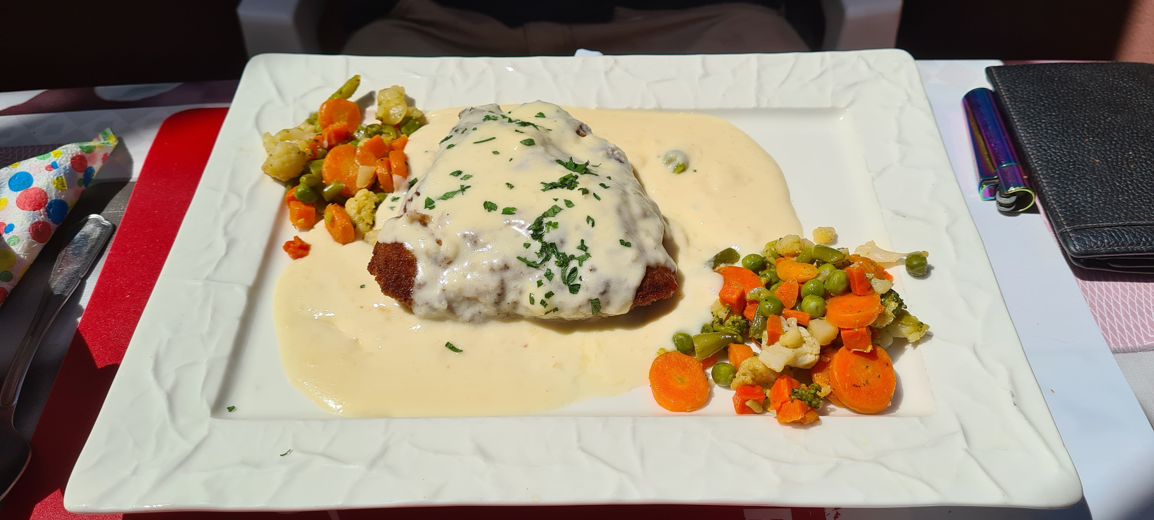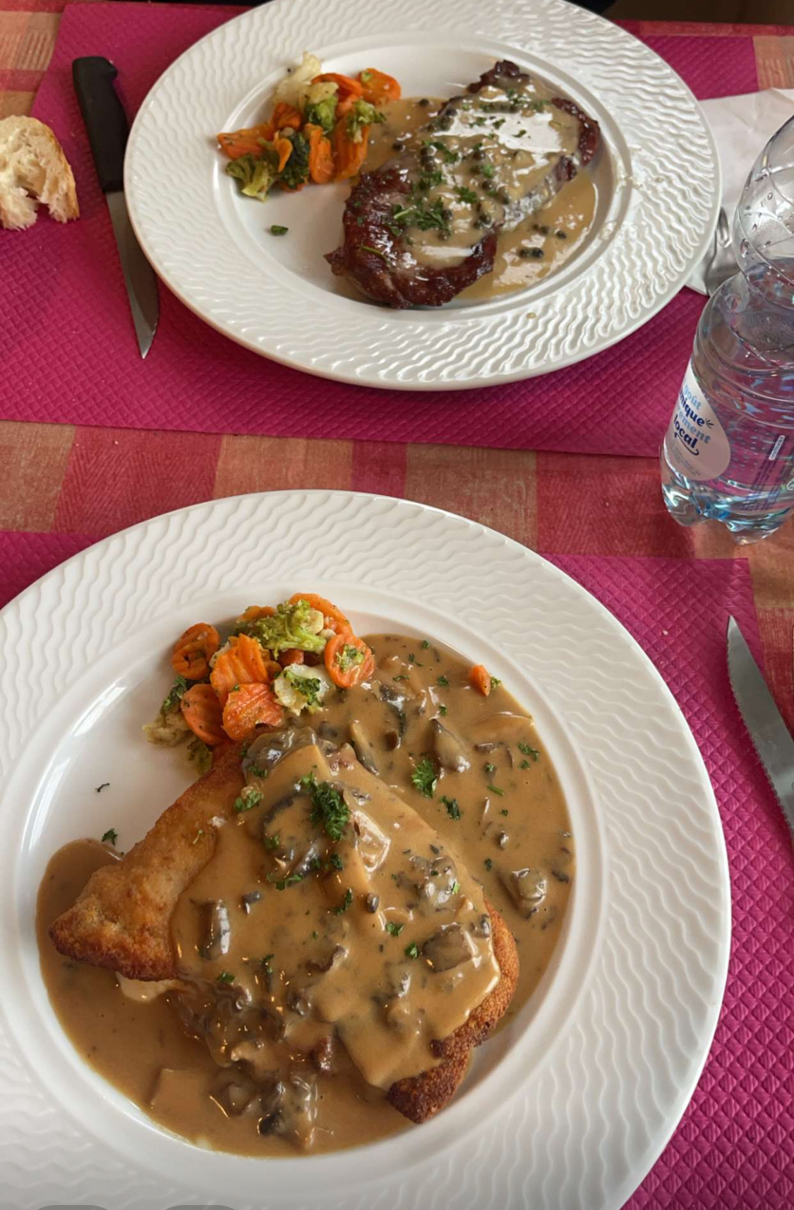 On à manger cordon bleu de veau à la crème c'était immangeable Je suis désolée la sauce elle était trop bonne on es pas difficile mais franchement c étais vraiment pas bon
