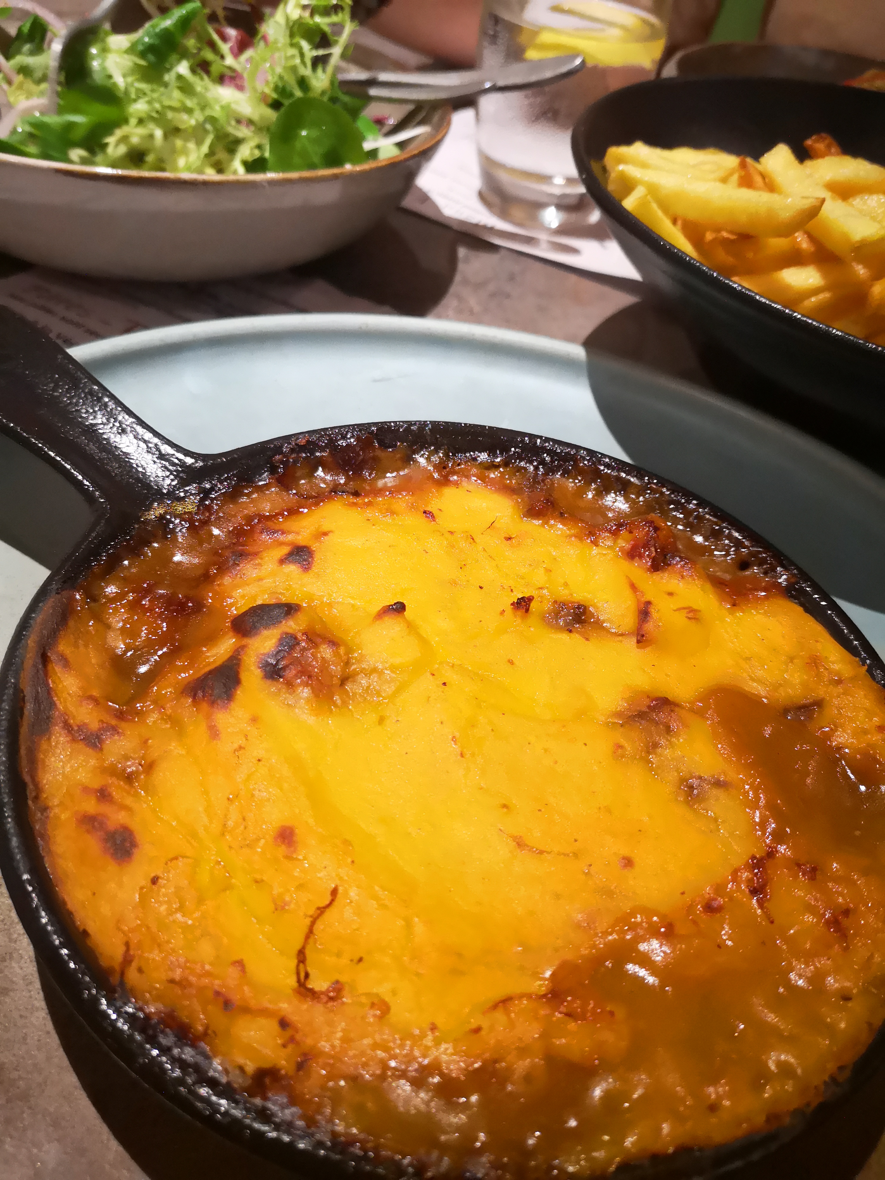 Par où commencé : Point positif : le lieu est sympathique, les frites étaient bonne ainsi que la pizza (piquante). Point négatif : pain du burger trop cuit (cramé sur les côtés), la tarte flambée pareille, service un peu long mais sympathique. Ensuite le dessert alors je n’ai pas réclamé sur place car j’avais pas le temps mais je commande le fondant au chocolat qui est en suggestion qui est censé être accompagné d’une boule vanille comme noté sur le tableau des suggestions cependant je reçois bien un fondant au chocolat pas vraiment fondant… noyé dans la crème anglaise et au lieu d’avoir une boule vanille je reçois une boule chocolat. Un peu déçu voyant les avis très positifs et le 4,7 et de recevoir des plats comme ça…