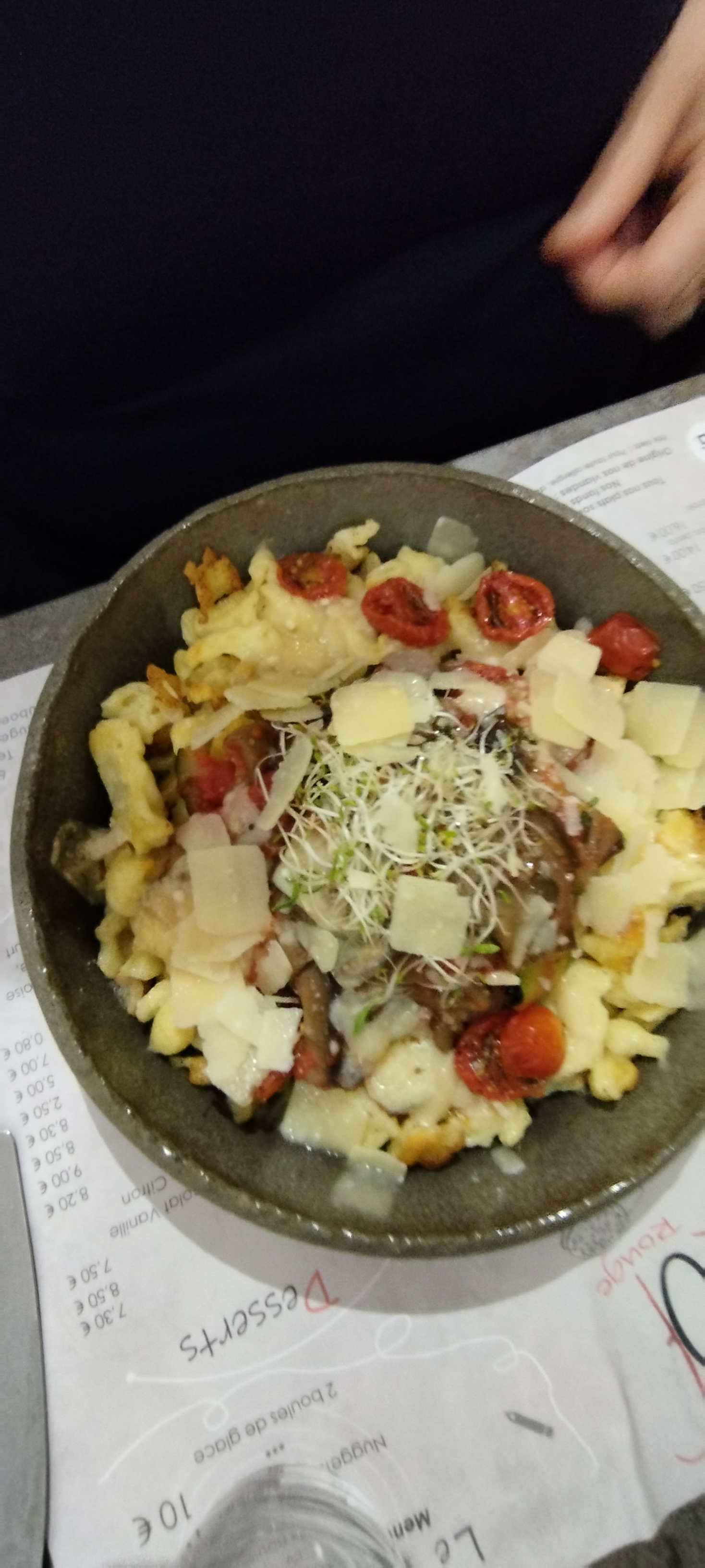 Incroyable gratin et pizza. Le jambon rôti sur os est exceptionnel ! Ils sont si adorables et le cappuccino était savoureux