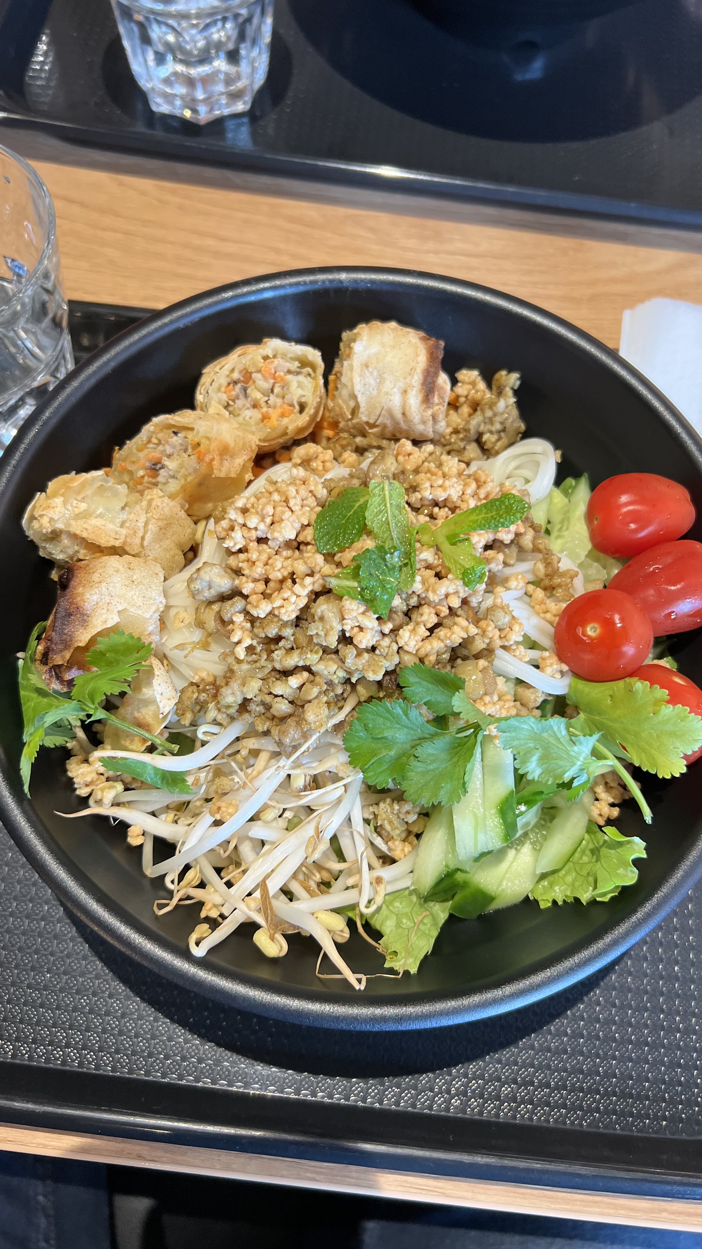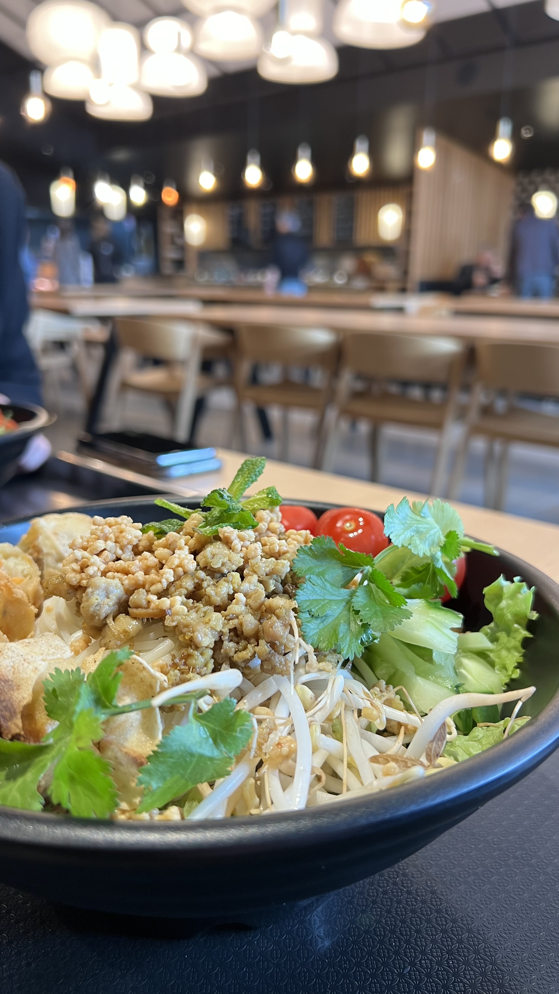 Restaurant bien décoré mais température glaciale ! On a mangé en gardant notre manteau..sinon, plat bobun et rouleaux de printemps corrects