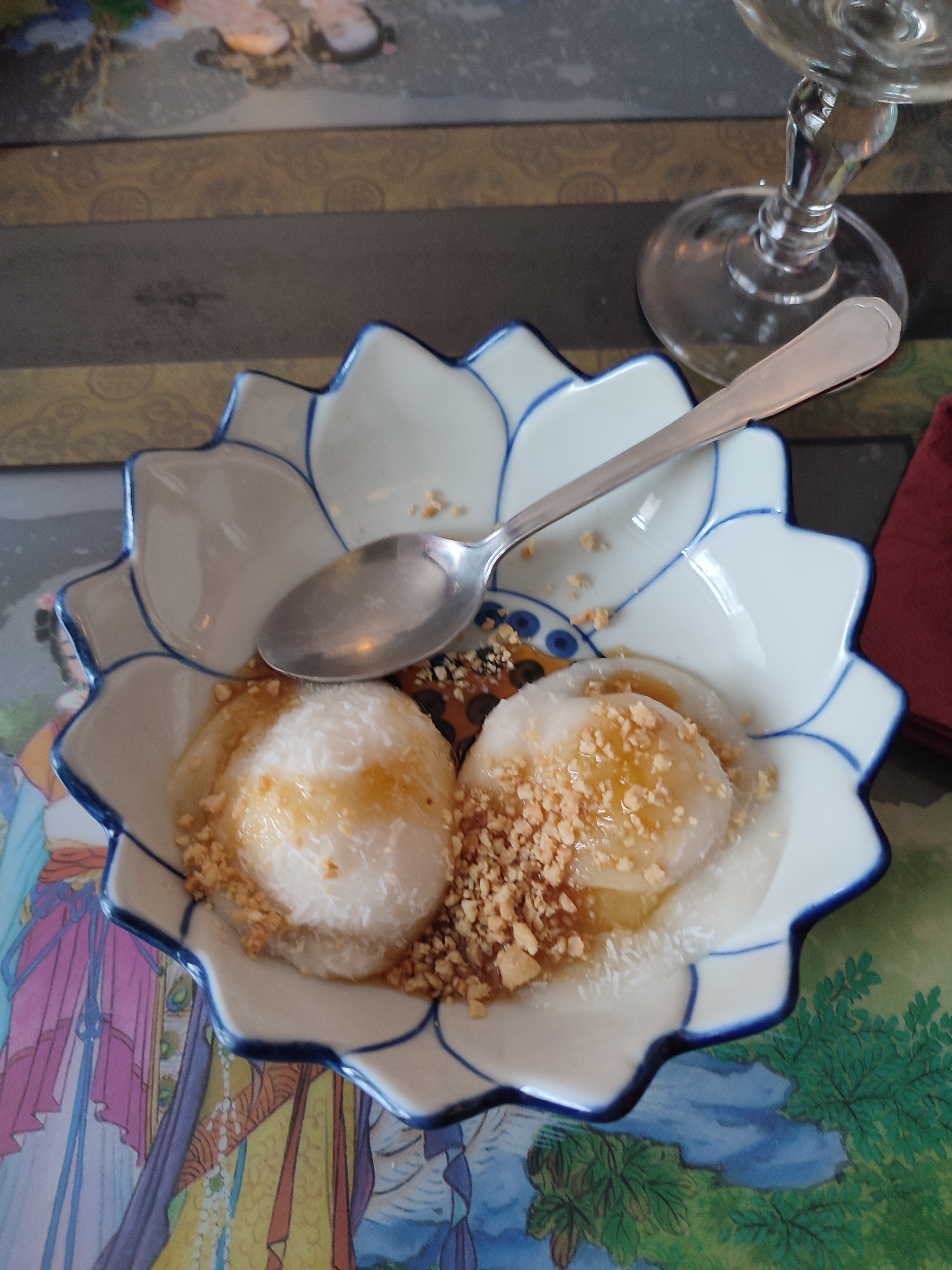 Nous avions réservé pour 19h30 avec un ami, arrivée sur place aucun accueil personnel dans le restaurant. Lorsque L’on nous apporte la carte, très peu d’apéritif proposé mais nous avons retenu le kir à 7€. Après notre prise de commande nous avons découvert des plats infâme, congelé pour le riz et noir comme du charbon pour le canard laqué. Ne prenez jamais les gambas sautées, car vous allez devoir plonger vos doigts dans la sauce archi brûlante pour pouvoir les décortiquer. Ce restaurant est à fuir. De plus, ne cherchez pas le vin à la carte, il y en a pas! Les nems, et les samoussas, sont également Neutre en goût. Ne cherchais pas la salade et la menthe pour les nems, il y en a pas! L’horreur... merci le kebab D’a coté de nous avoir offert des frites pour combler notre appétit avec un verre de vin offert.