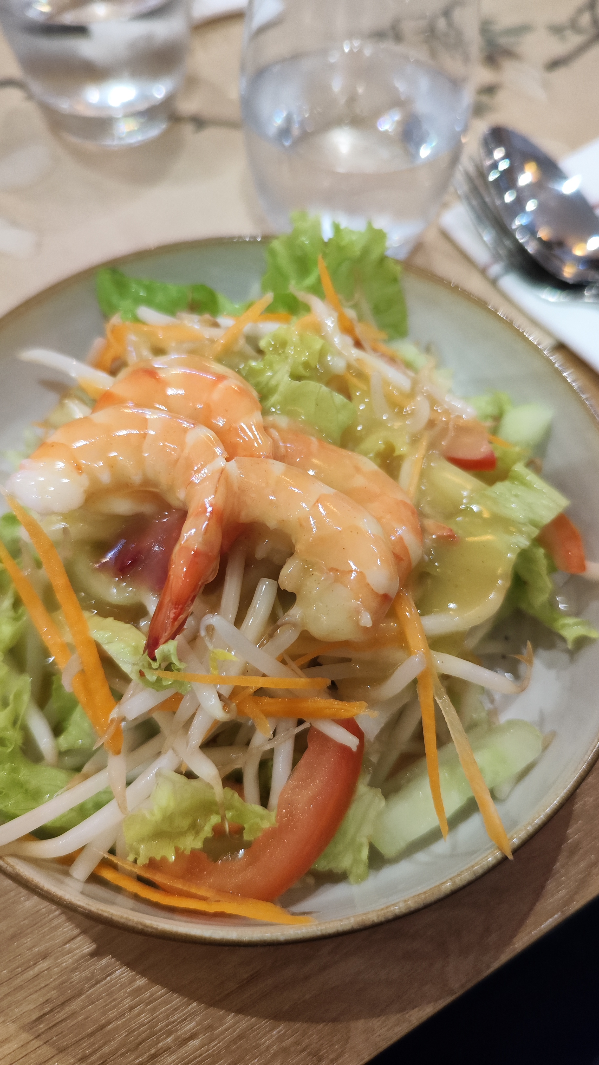 Accueil & cadre ok Poulet grillé à la citronnelle pas très savoureux Phad Thaï crevettes correct mais pour 14€ !! Conclusion rapport qualité prix défavorable Du déjà vu mais en plus cher Dommage