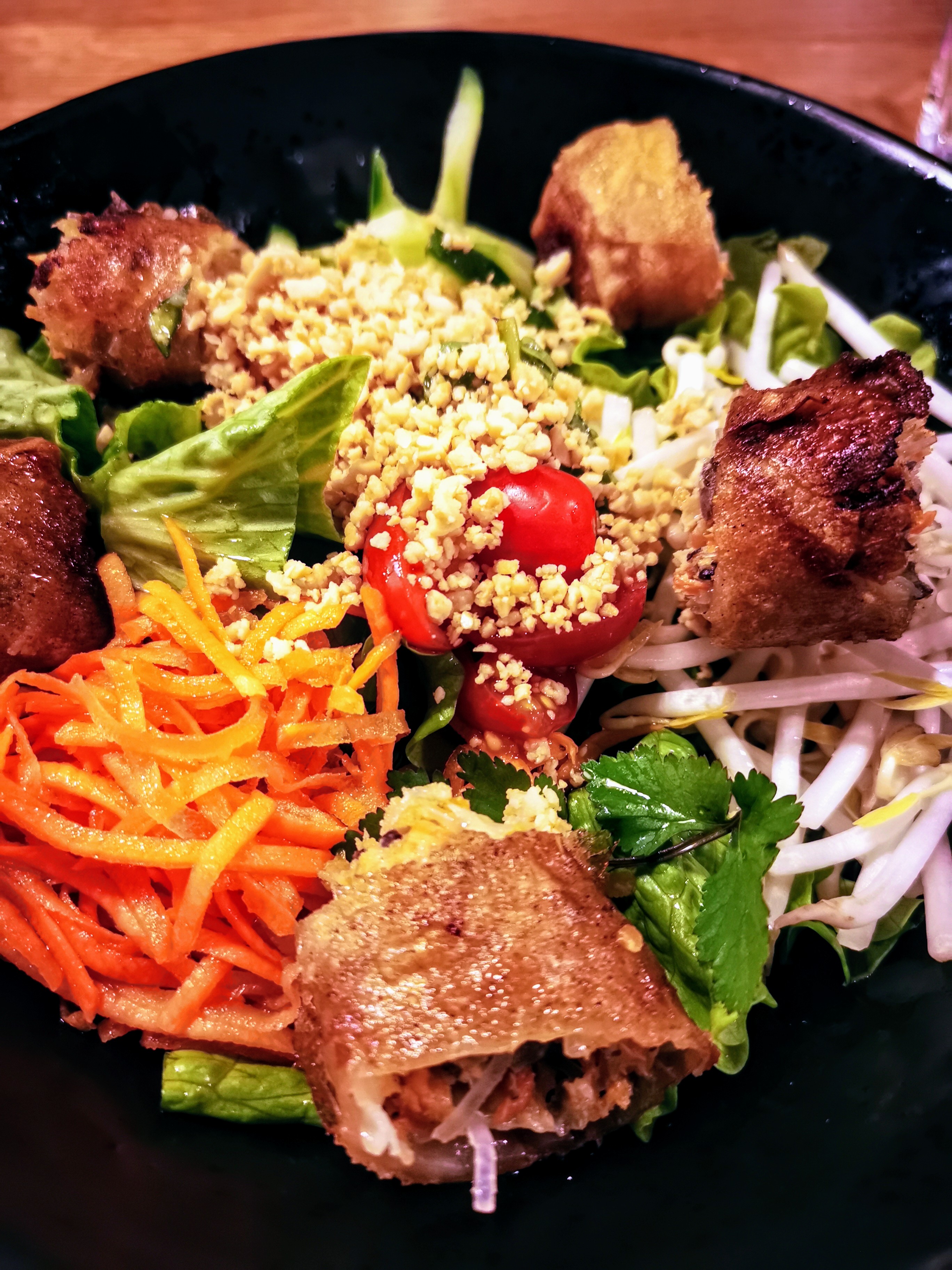 Pas emballé par le Bo bun à 10€. Viande sans saveur et on sent principalement le sucre dans le plat. Pas difficile de trouver mieux autour à ce prix.