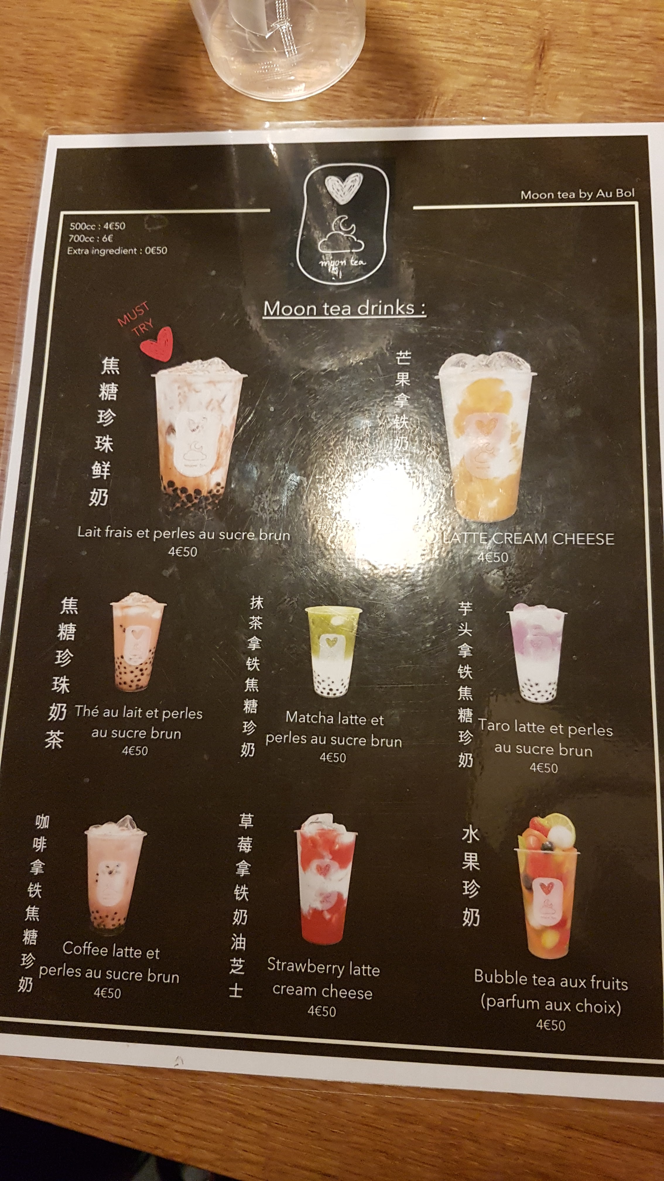 Le Bubble Tea au Moon Tea est une délice. Je le recommande a tous ceux qui n'ont jamais goûté, et à ceux qui ont goûté et qui adorent cette boisson.