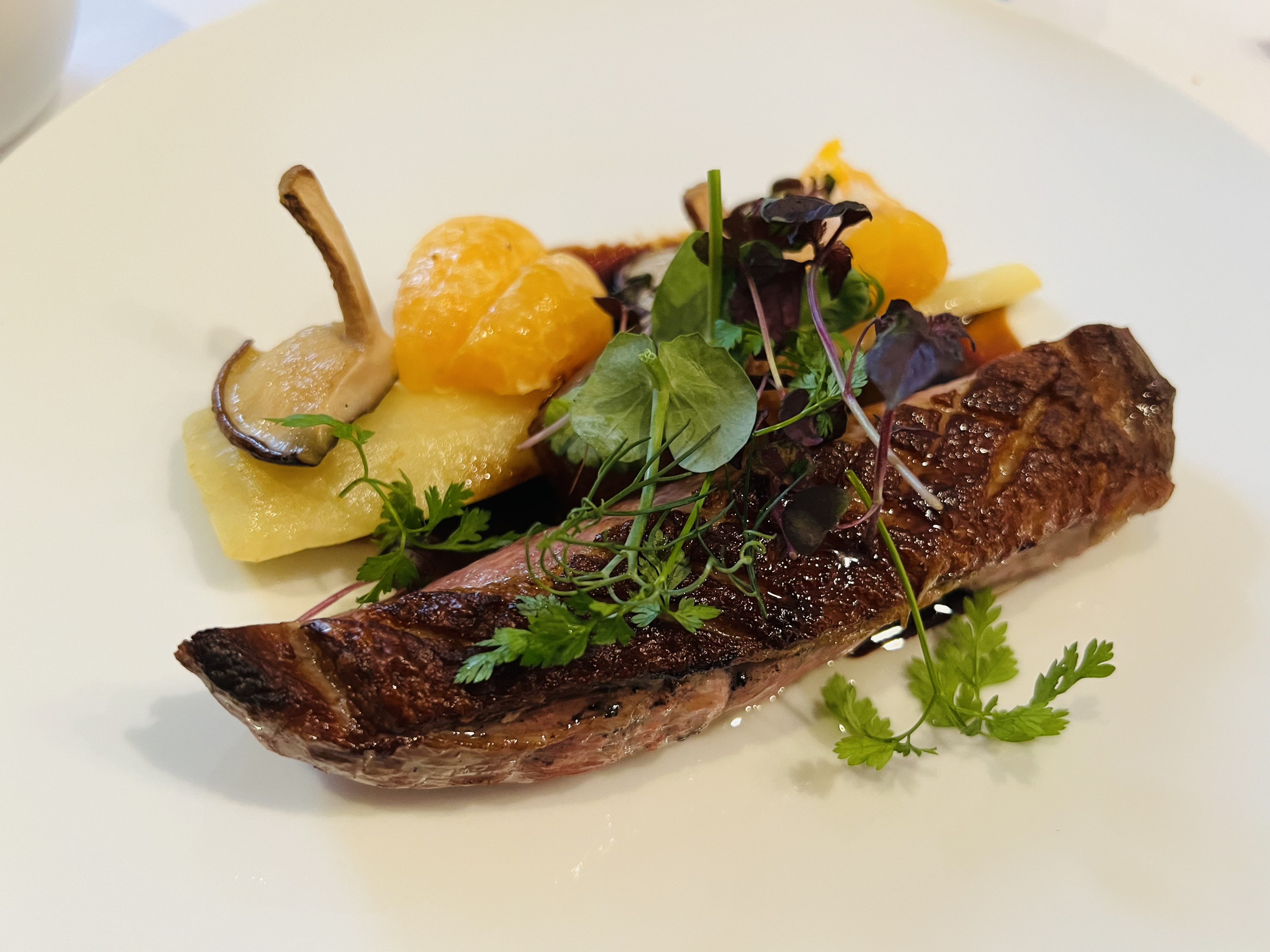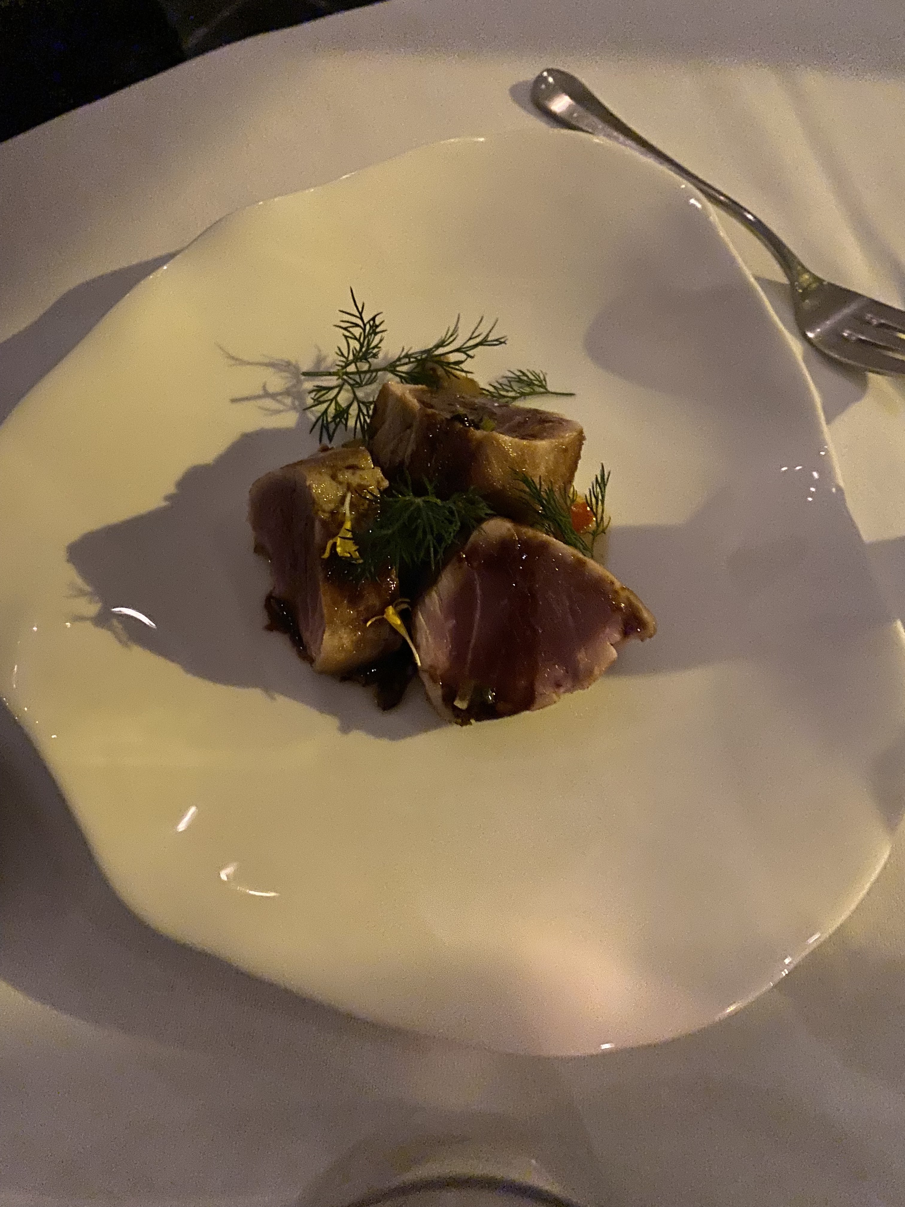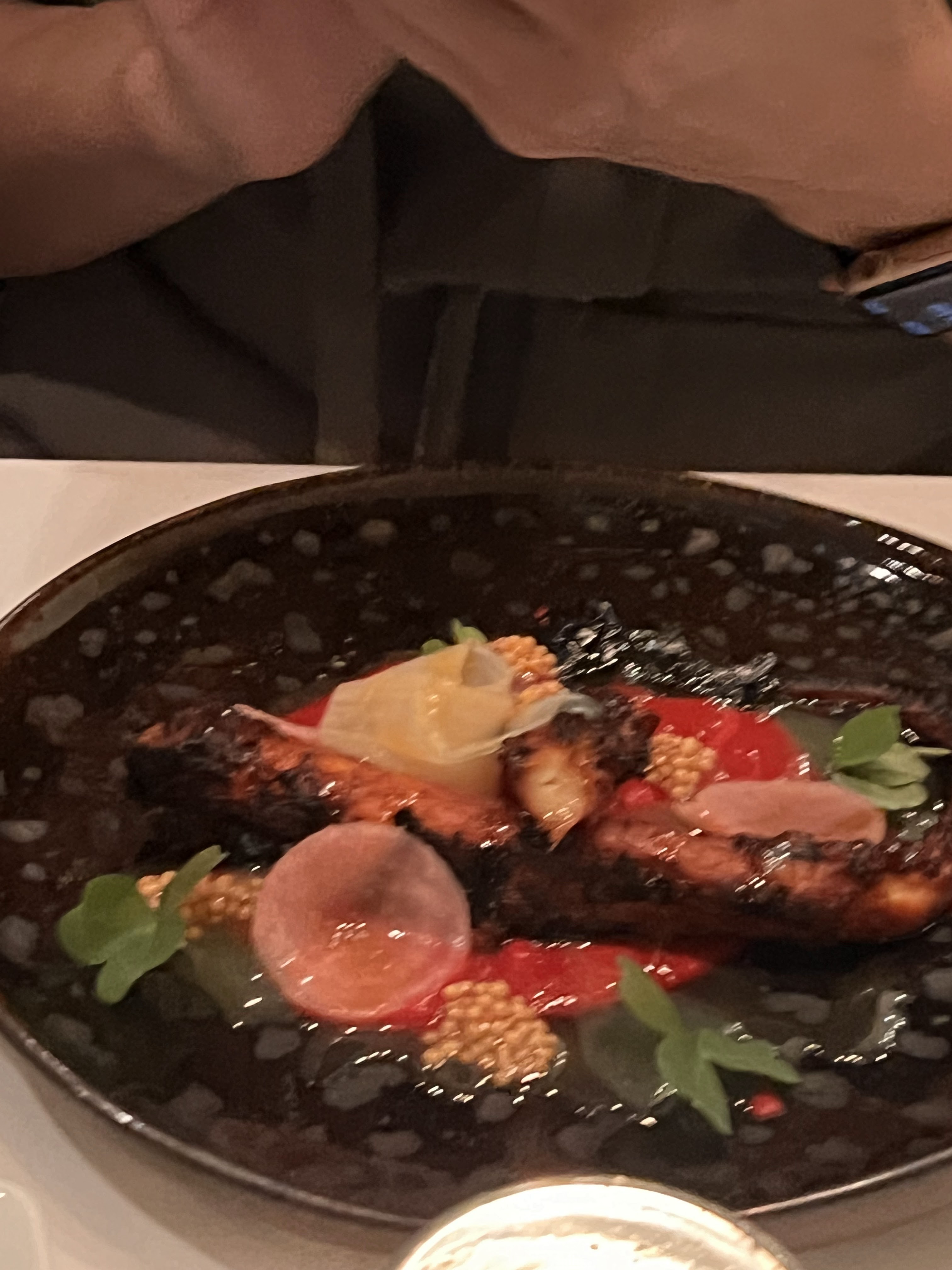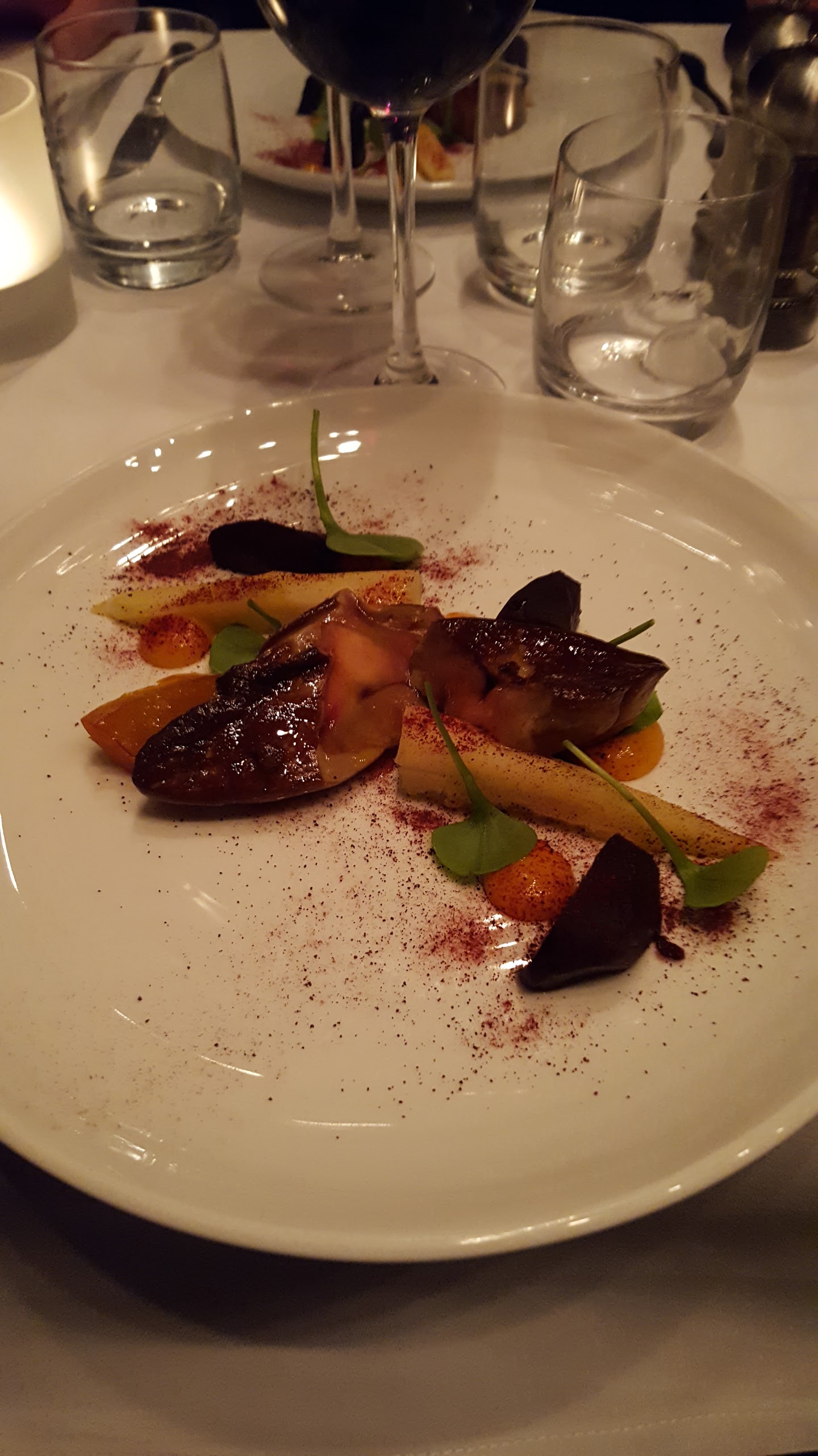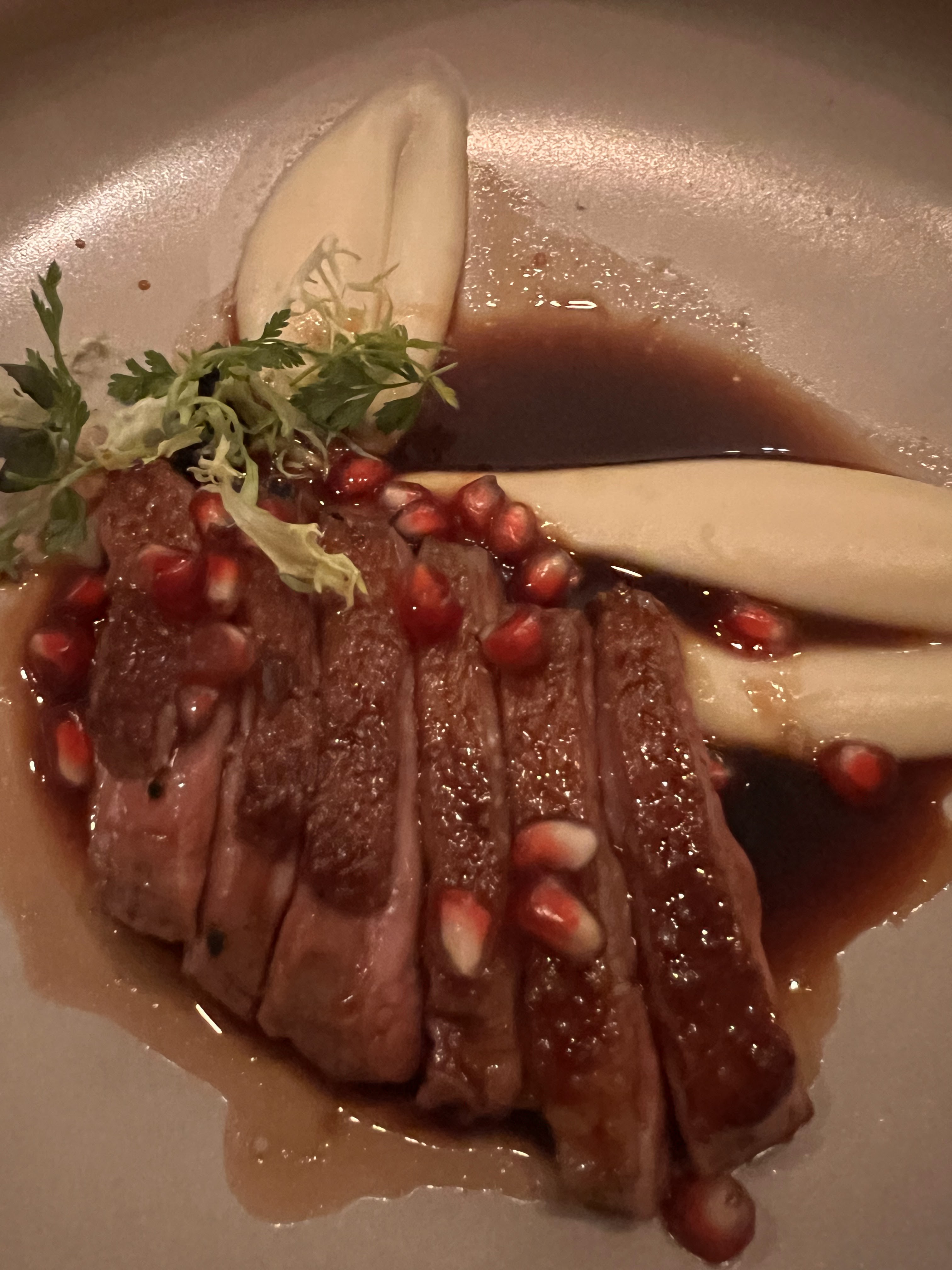 Vin exceptionnel, carpaccio de poulpe, canard moutarde-gingembre, et plus encore. Les serveurs étaient extrêmement attentifs et prêtaient attention aux détails.