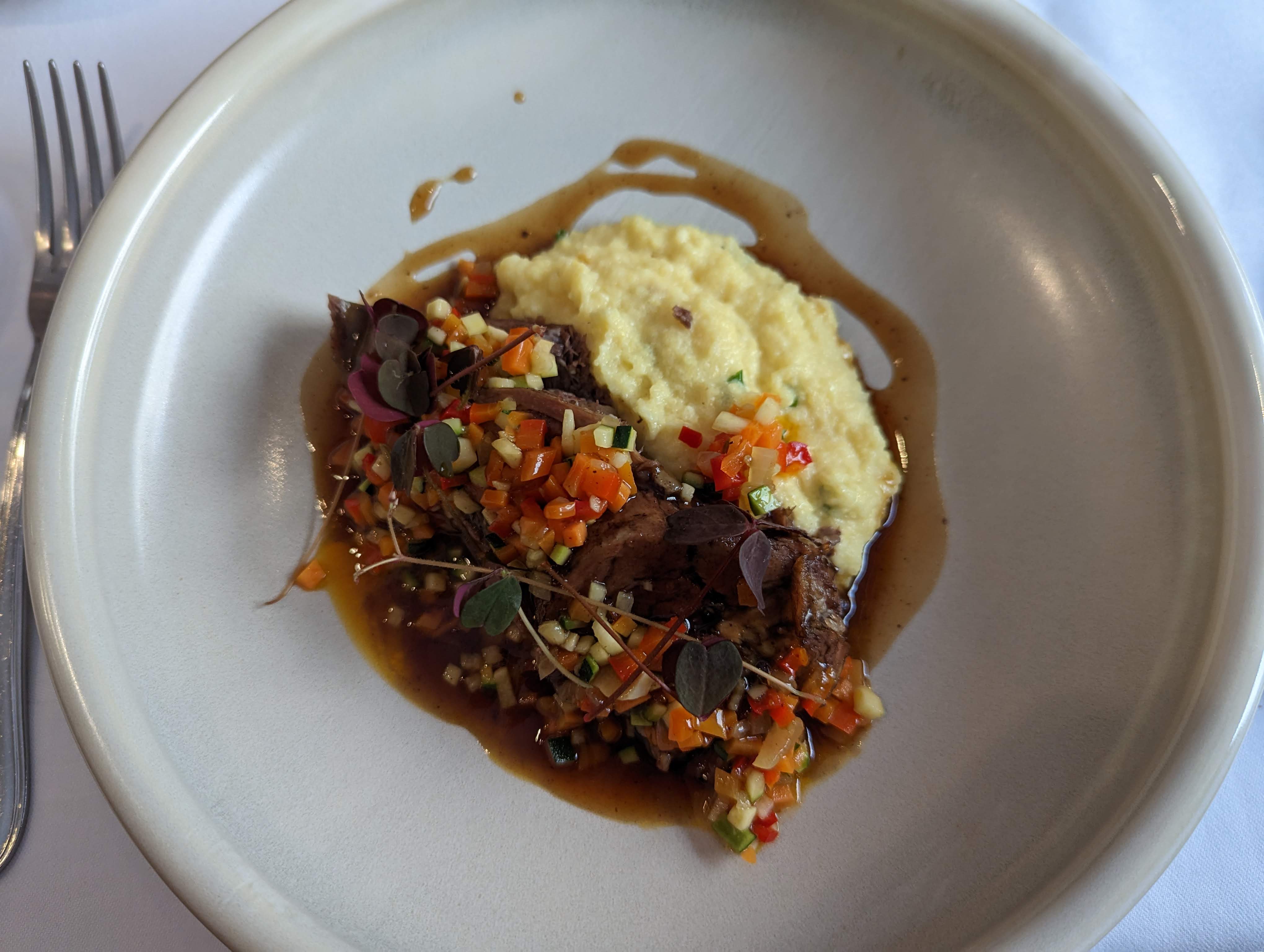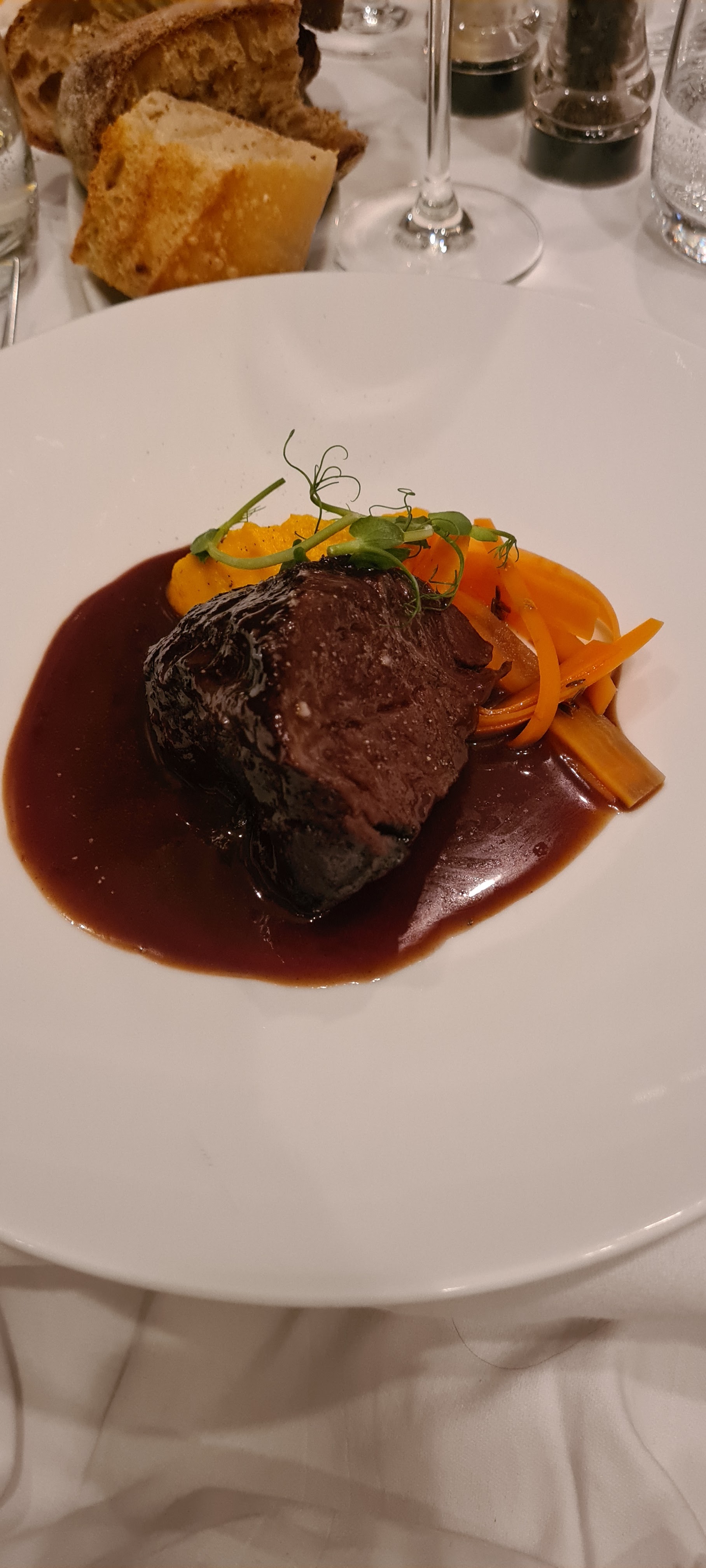 La classe pure. J'ai eu le bœuf avec purée de pommes de terre. Je suis tombé amoureux de ce plat. Probablement la meilleure purée de pommes de terre. La consistance et le goût étaient tellement hors du commun.
