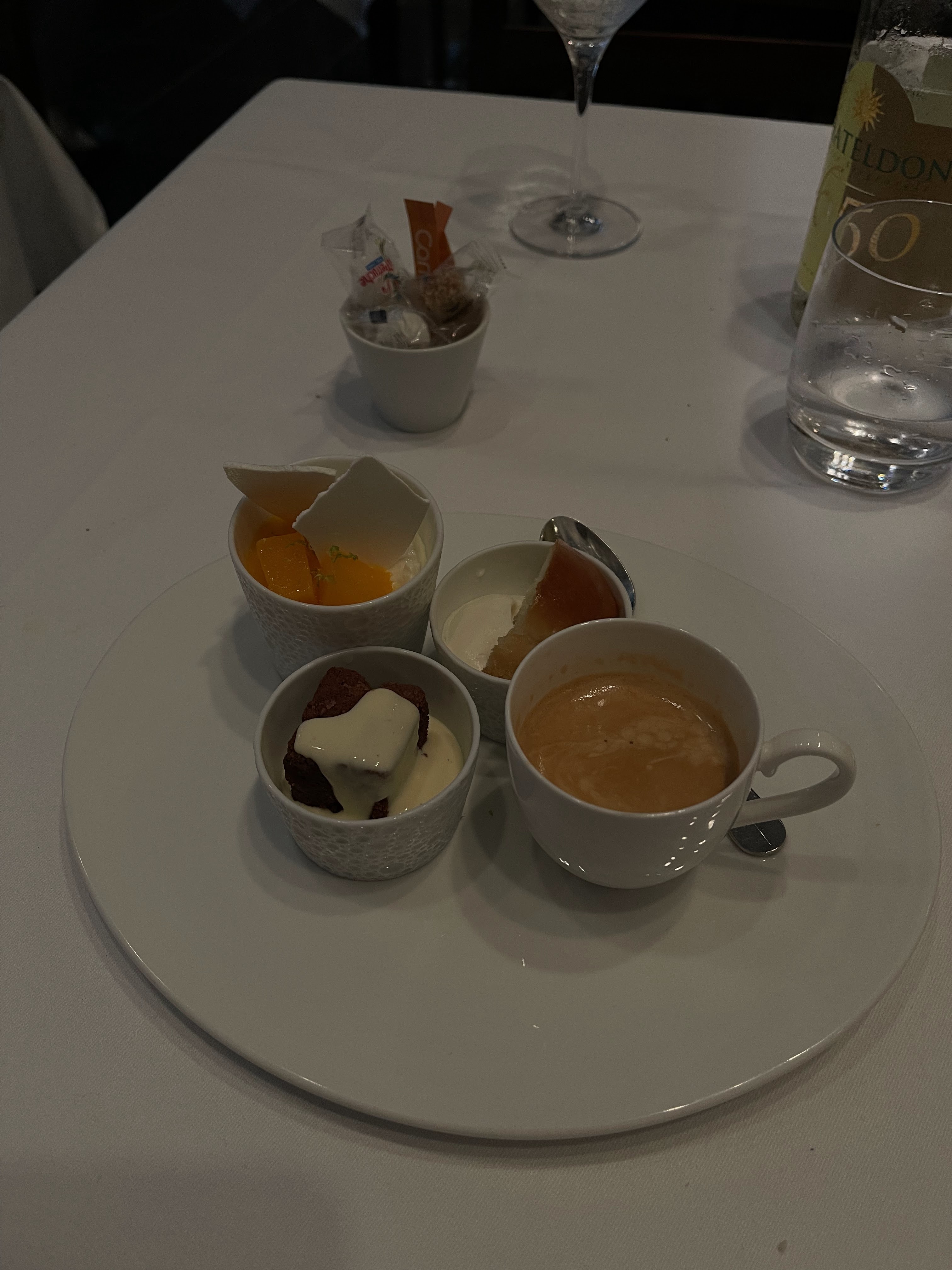 Plats soignés, dessert goûteux. Un des serveurs à été un peu dur à l'encontre d'une des convives avant de pouvoir décrire le café/thé gourmand. Certaines personnes aiment les surprises, d'autres beaucoup moins. Merci pour votre service, et les minutes après fermeture. Cordialement.