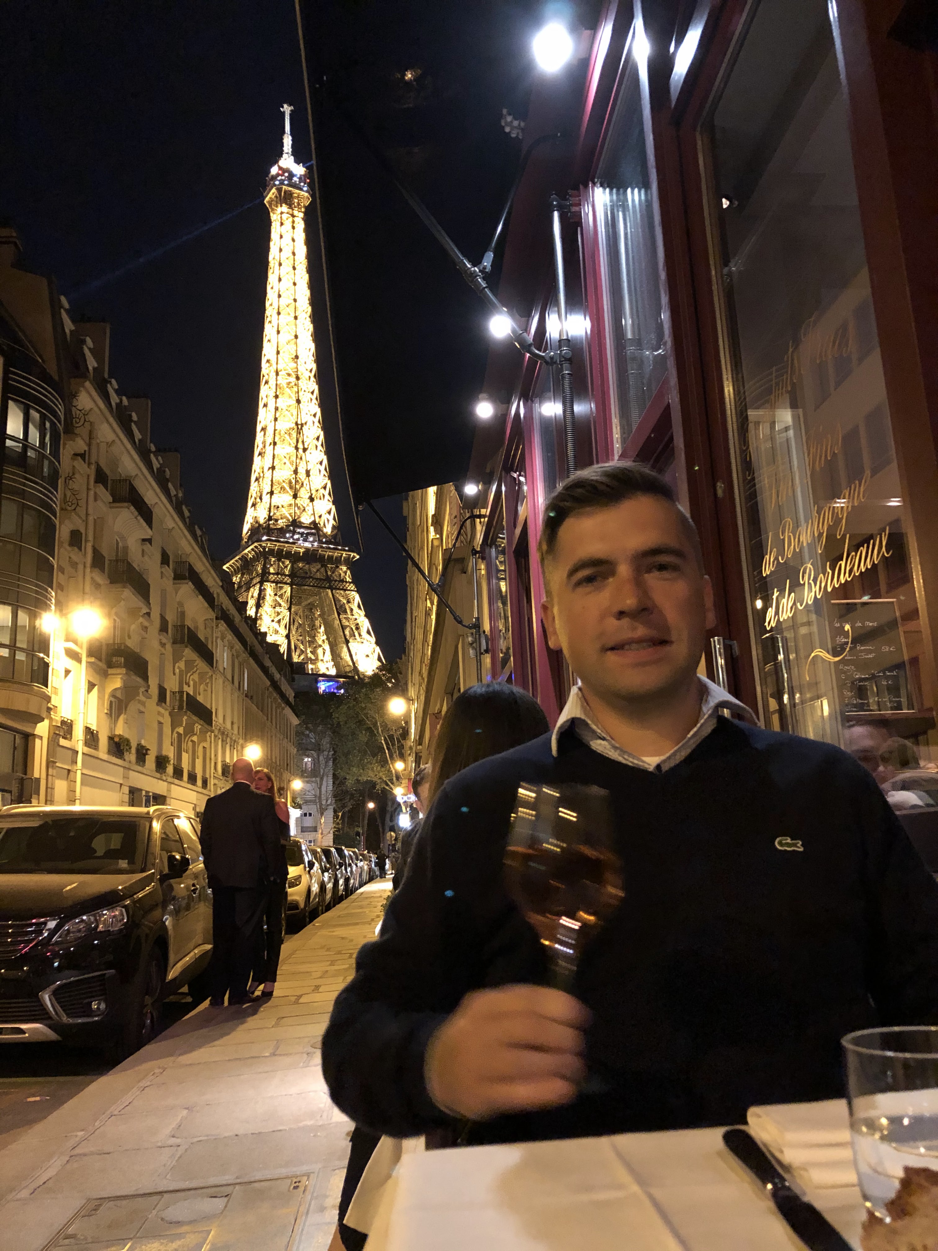 Super expérience! Ma femme et moi n'étions à Paris que quelques jours pour célébrer notre anniversaire. J'ai envoyé un e-mail quelques semaines plus tôt et demandé une place sur la terrasse pour que nous puissions admirer la Tour Eiffel la nuit (en fonction de la météo) - ils ont dit qu'ils feraient de leur mieux. La soirée était belle et nous avons eu notre table sur le patio - trottoir vraiment (très français) avec une vue magnifique. Nous avons passé un moment fabuleux. J'ai apprécié le menu dégustation du chef à 6 plats et chaque plat était parfaitement cuit et était magnifique. Le service était également attentif et je m'attendais à payer plus pour cette nourriture et ce vin d'excellente qualité. Valeur fantastique et je le recommande vivement !