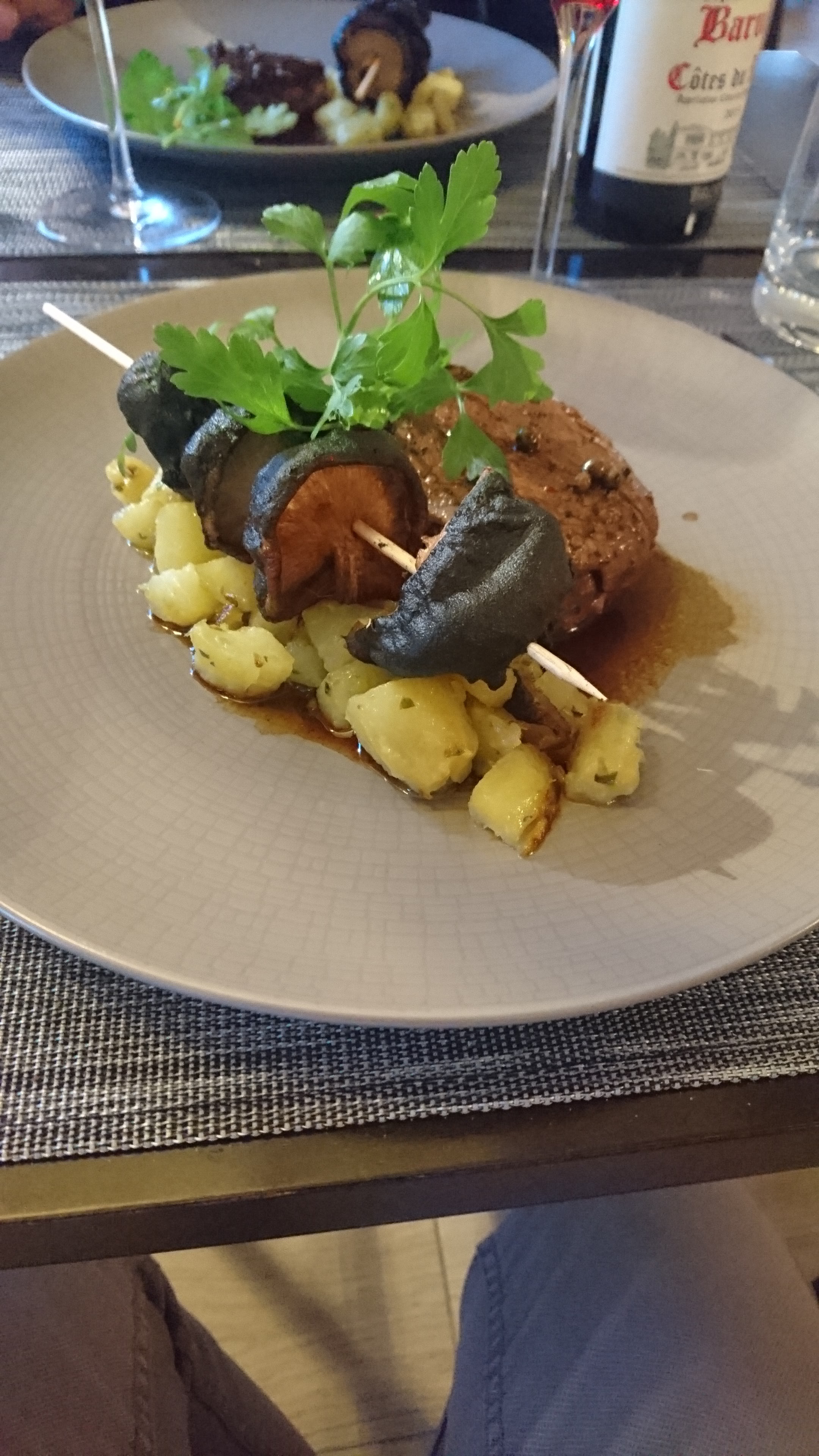 Très bonne idée de servir des escargots autrement que dans des coquilles ou en cassolette : une entrée originale, surprenante et délicieuse. Plat et dessert à l'avenant.