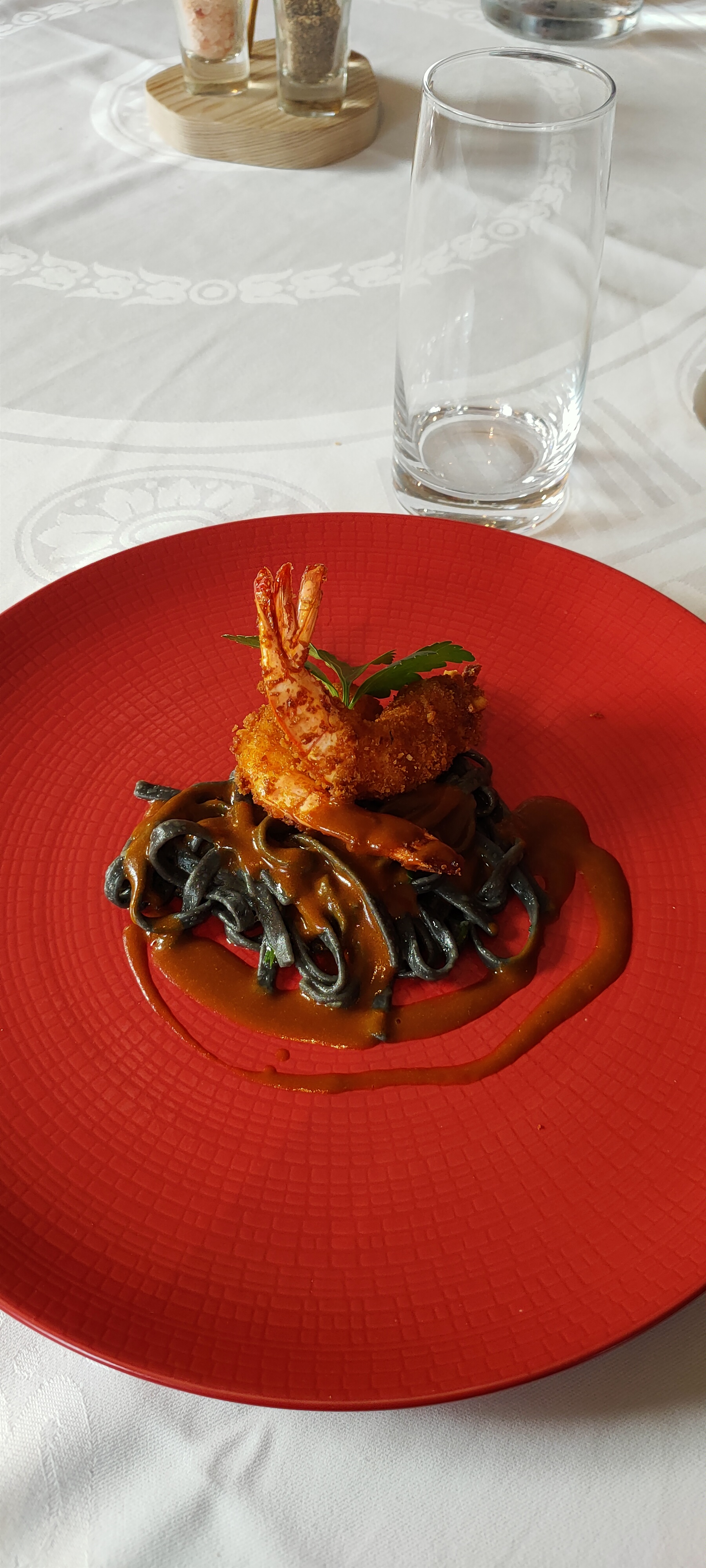 Toujours de beaux plats sophistiqués avec des goûts qui changent ! 2 menus (2 budgets), la carte est bien pensée. Moment agréable, on aime y retourner ! Exemple avec mon entrée linguines, tempura et encre de seiche.