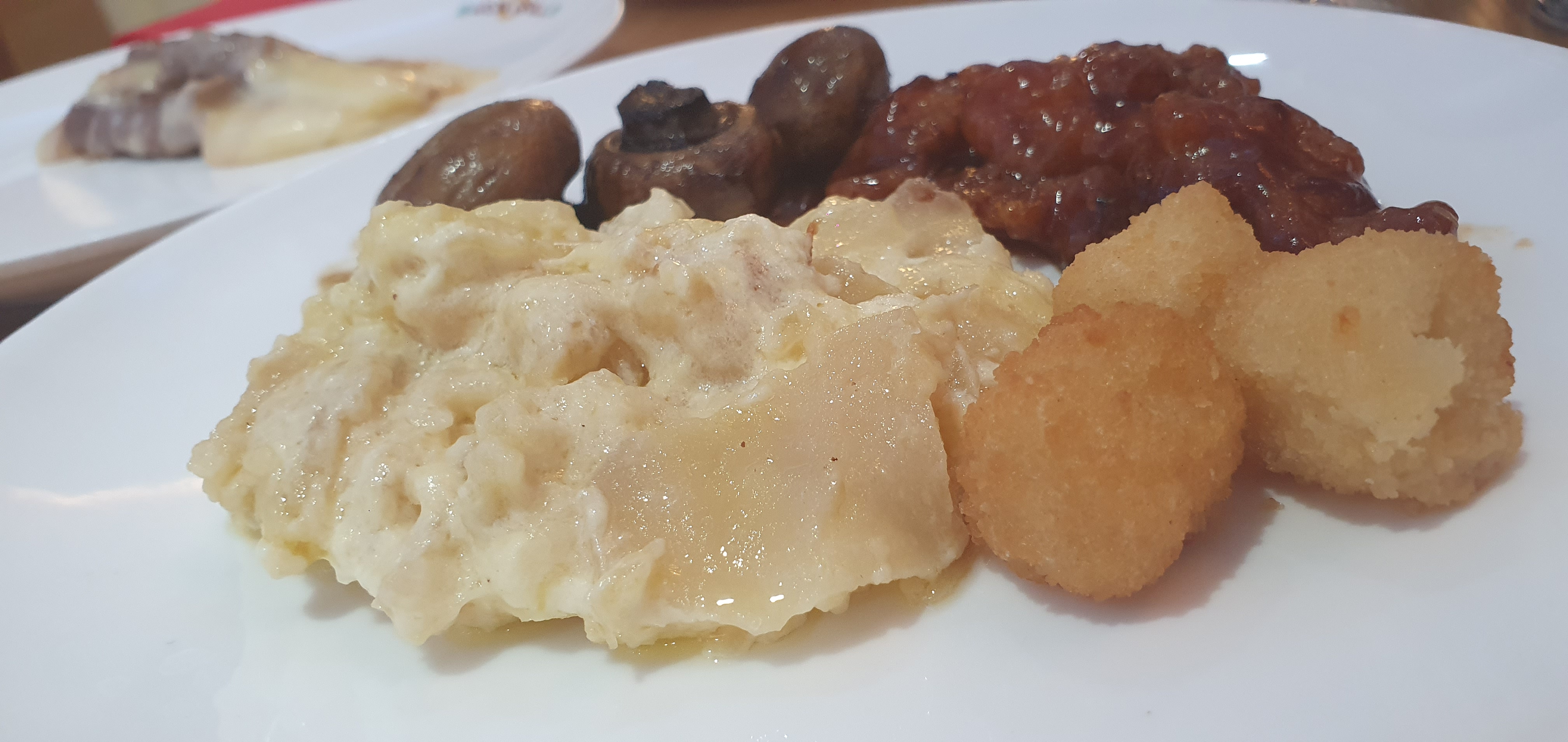 Malgré l'heure tardive de notre arrivé (22h) beaucoup de choix. Peut-être un peu dur ou froid pour certains plats mais vu l'heure pas très grave. Bémol: les desserts tous industriels c'est dommage. Mais personnels très agréables et très prévenants. A refaire mais plus tôt.