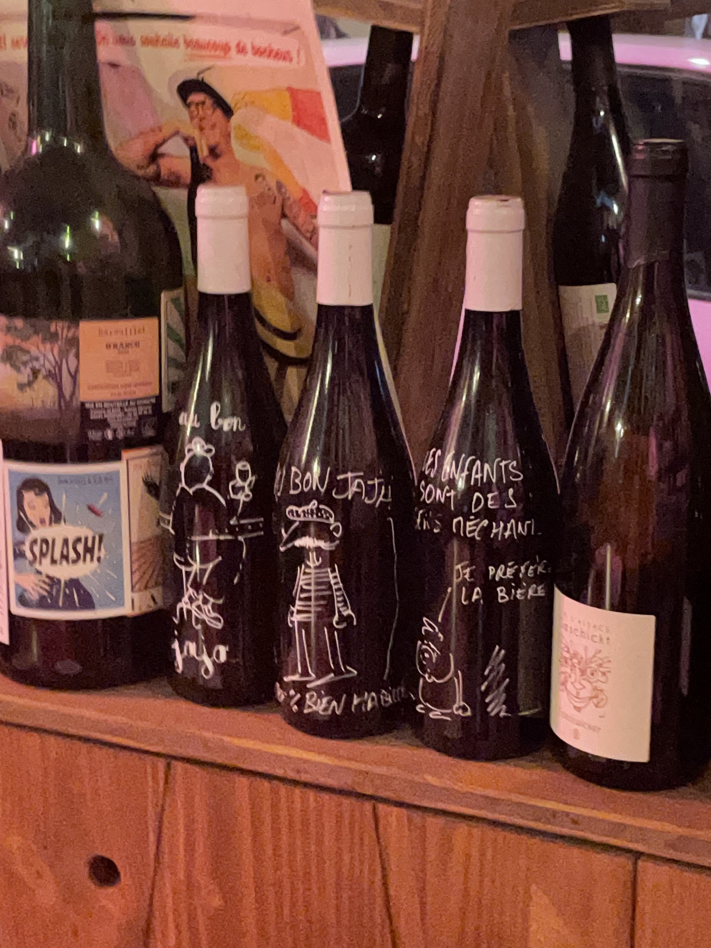Des vins natures dans un rade comme on les aime ! Attention, le prix des quilles affiché s'entend sur place .