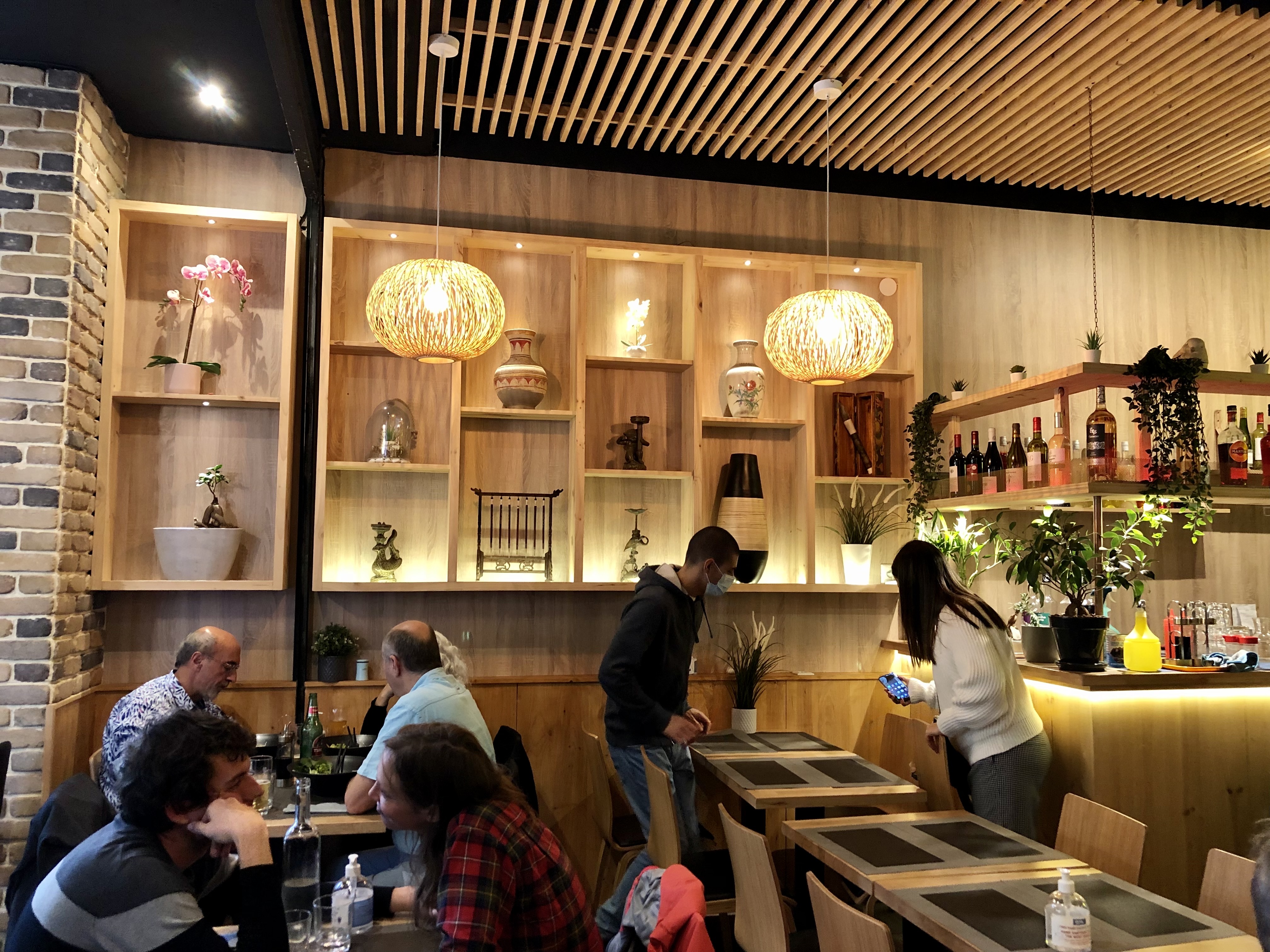 Cuisine bonne mais service lent (35minutes) un lundi midi alors que le restaurant était plein au 2/3. Les plats d'une même table ne sont pas servi en même temps car le service est fait par vague: tous les bobun, puis toutes les nouilles, etc etc. Prenez donc un même type de plat pour manger en même temps! La déco est sympa et moderne