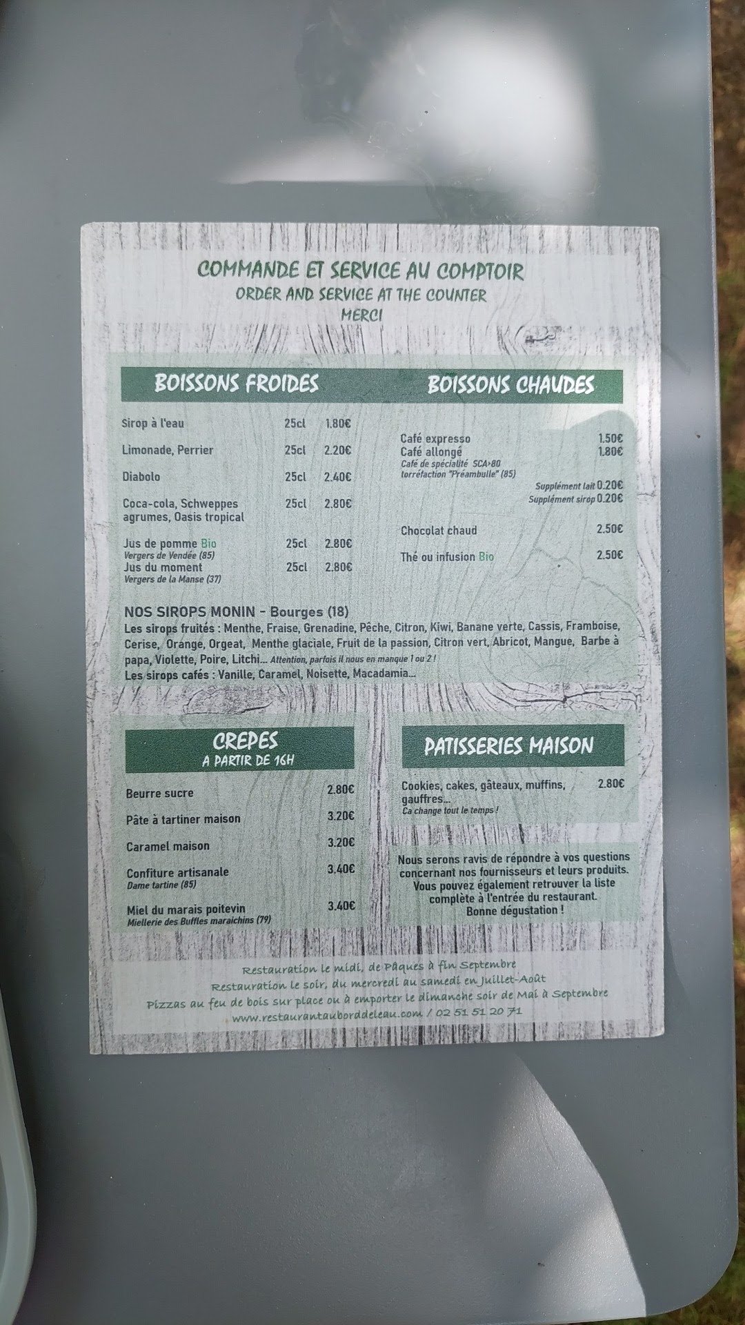 Lieu agréable en bord de marais, cuisine de terroir et fait maison, cuit au feu de bois, ouvert que quelques jours dans la semaine, je recommande
