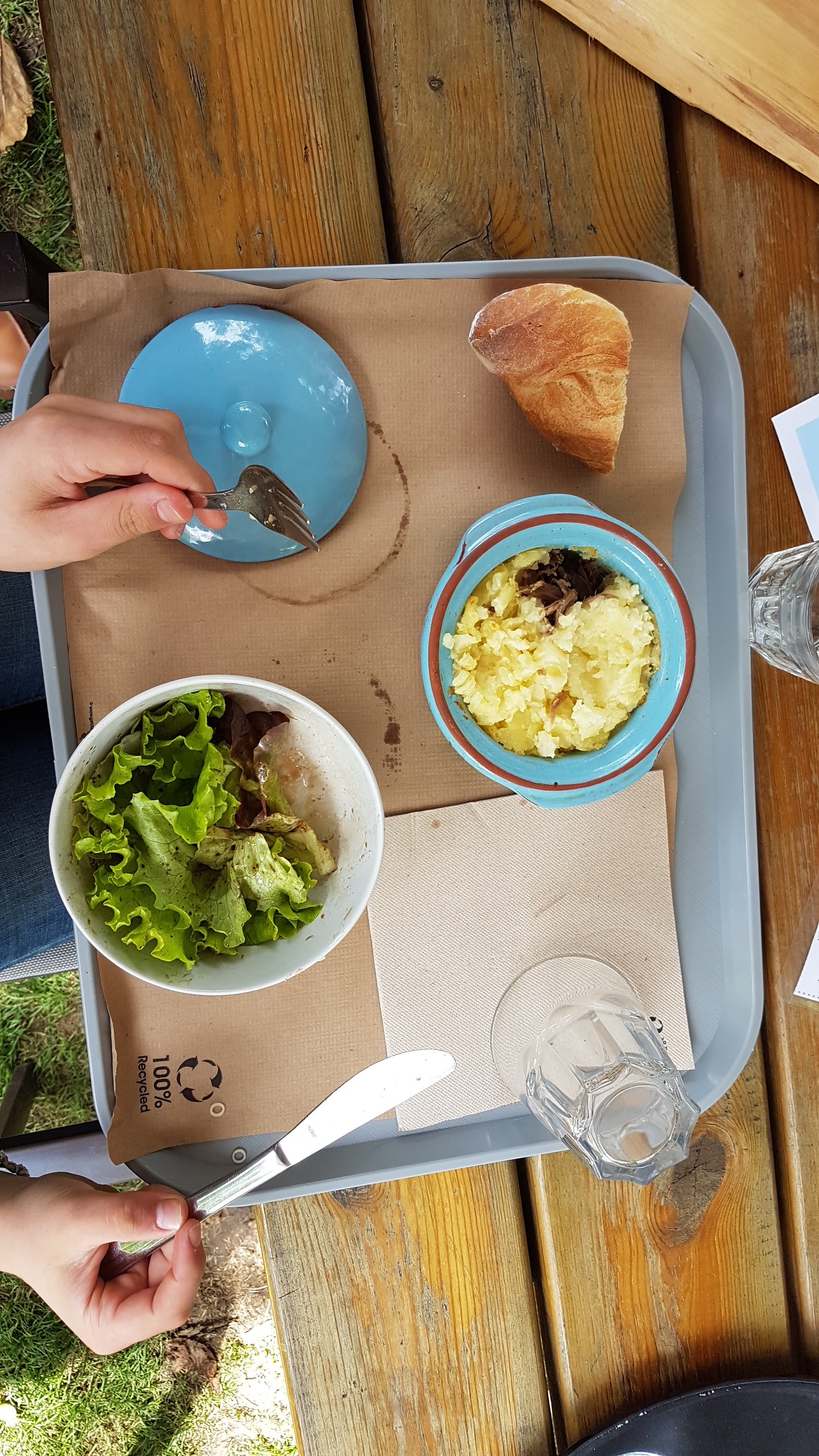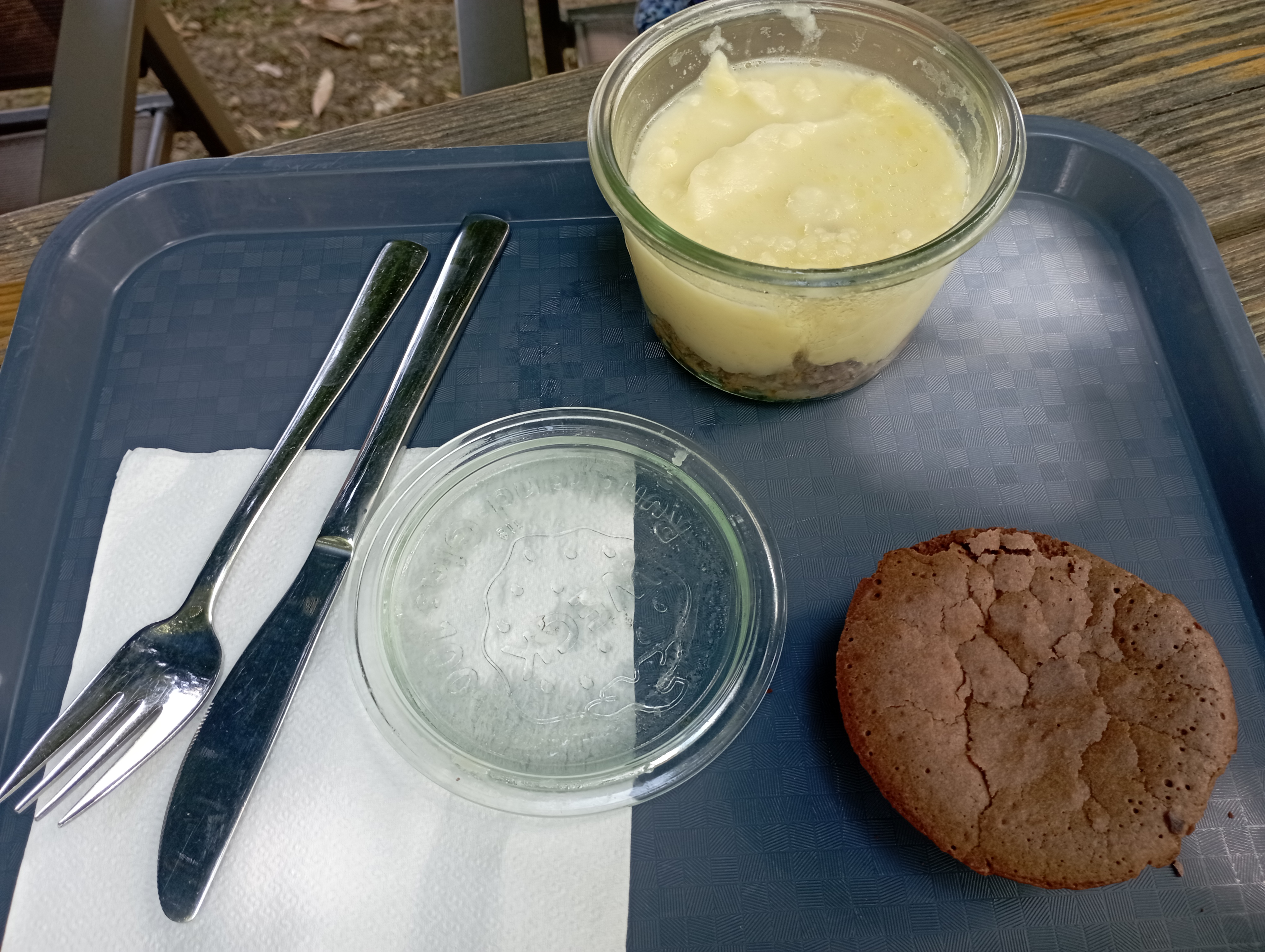 Environnement agréable, cuisine maison ( pas trop de saveur ) cependant service façon self, on est interpellé par nos prénoms ( tout le monde vous regarde )pour récupérer un plateau avec entrée plat dessert dessus ! Attention ceci n’est pas un confit de canard mais un Parmentier de canard ( pour le peu de canard )