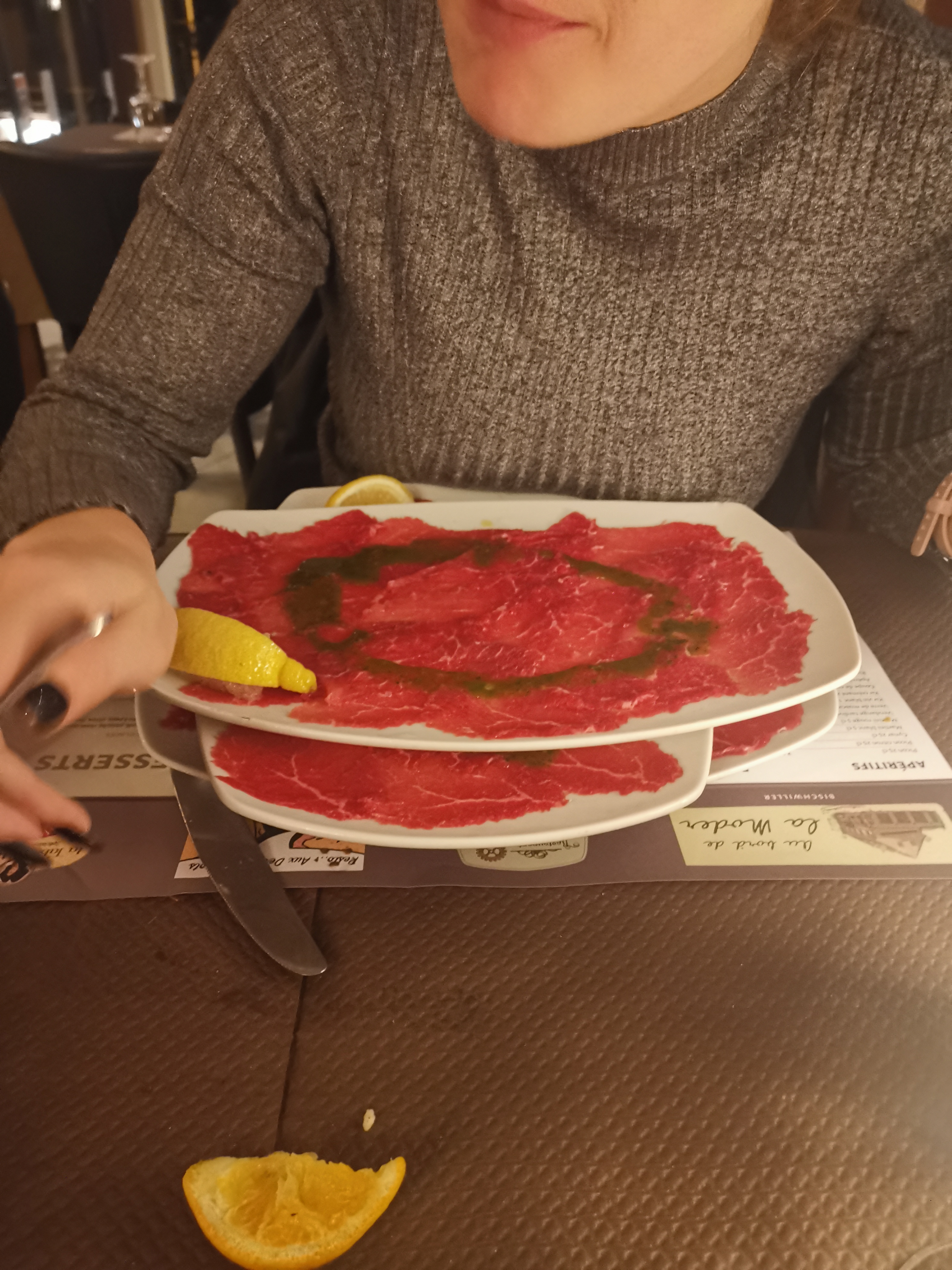La carte est sympathique, la terrasse aussi. Jamais déçu du repas ou des serveuses. Par contre voilà 5 mois nous avons dîné dans une petite salle comme si nous avions des voisins, de table à notre table tellement c'etait serré.... Pas du tout compatible avec les gestes barrières anti covid de l'époque ! On a eu l'impression d'etouffer et de suivre toutes les conversations de tous nos voisins. Mauvaise expérience, on s'etait dit plus jamais à l'intérieur... Sur la terrasse, nous avons passé de beaux moments. Le carpacio à volonté est top, les salades énormes et gourmandes tout comme les cordons bleus. Le service est impressionnant et ultra rapide !