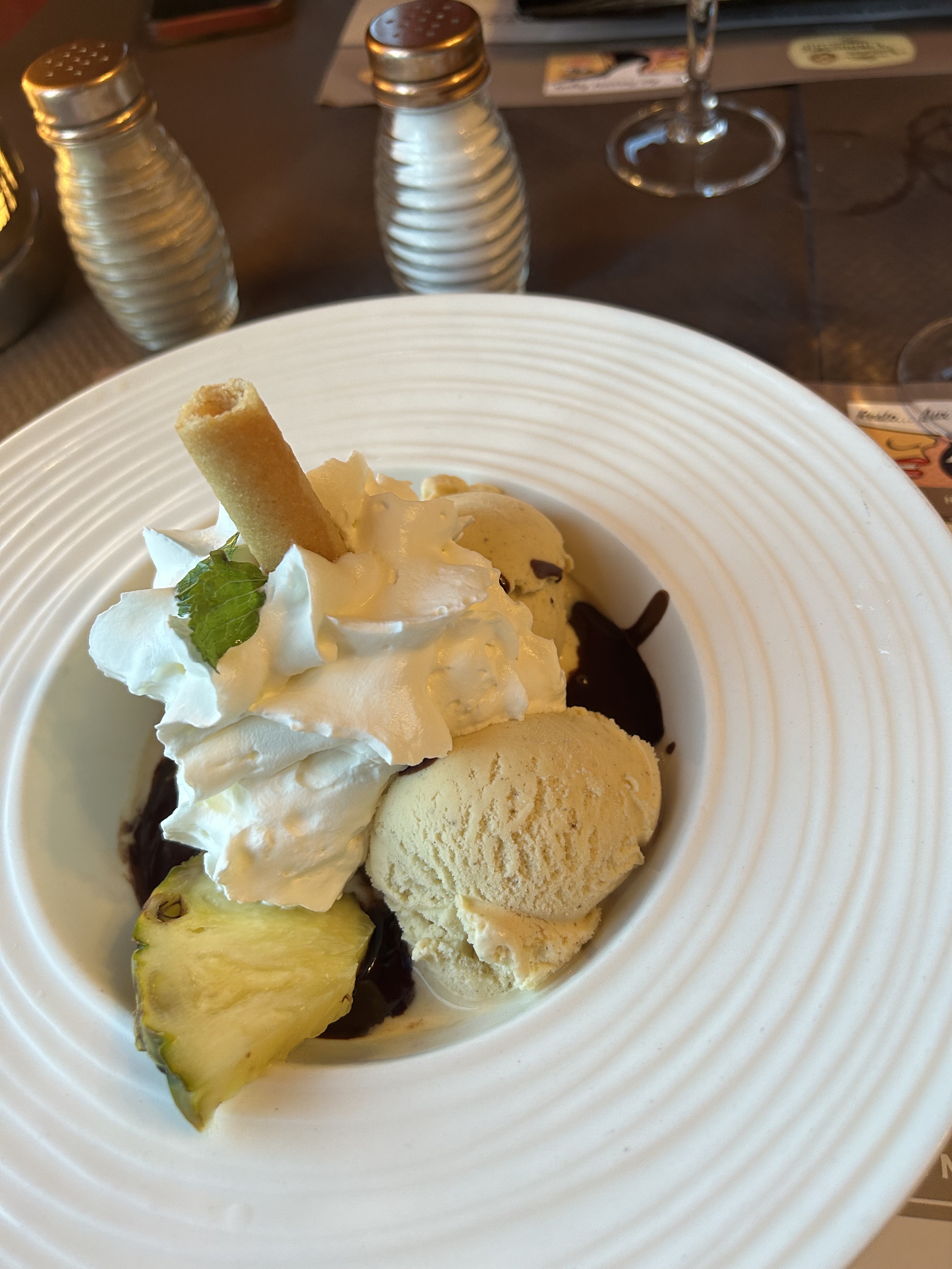 🏘 Très bon restaurant 🍽 L'endroit est sympa et conviviale. Le personnel est toujours souriant et aux petits soins ! La cuisine y est très bonne 😚 ( Et les desserts également 🍧🥮 ). Il manquerait juste une clim ❄ pour que tout soit parfait 😊. Nous reviendrons avec plaisir !