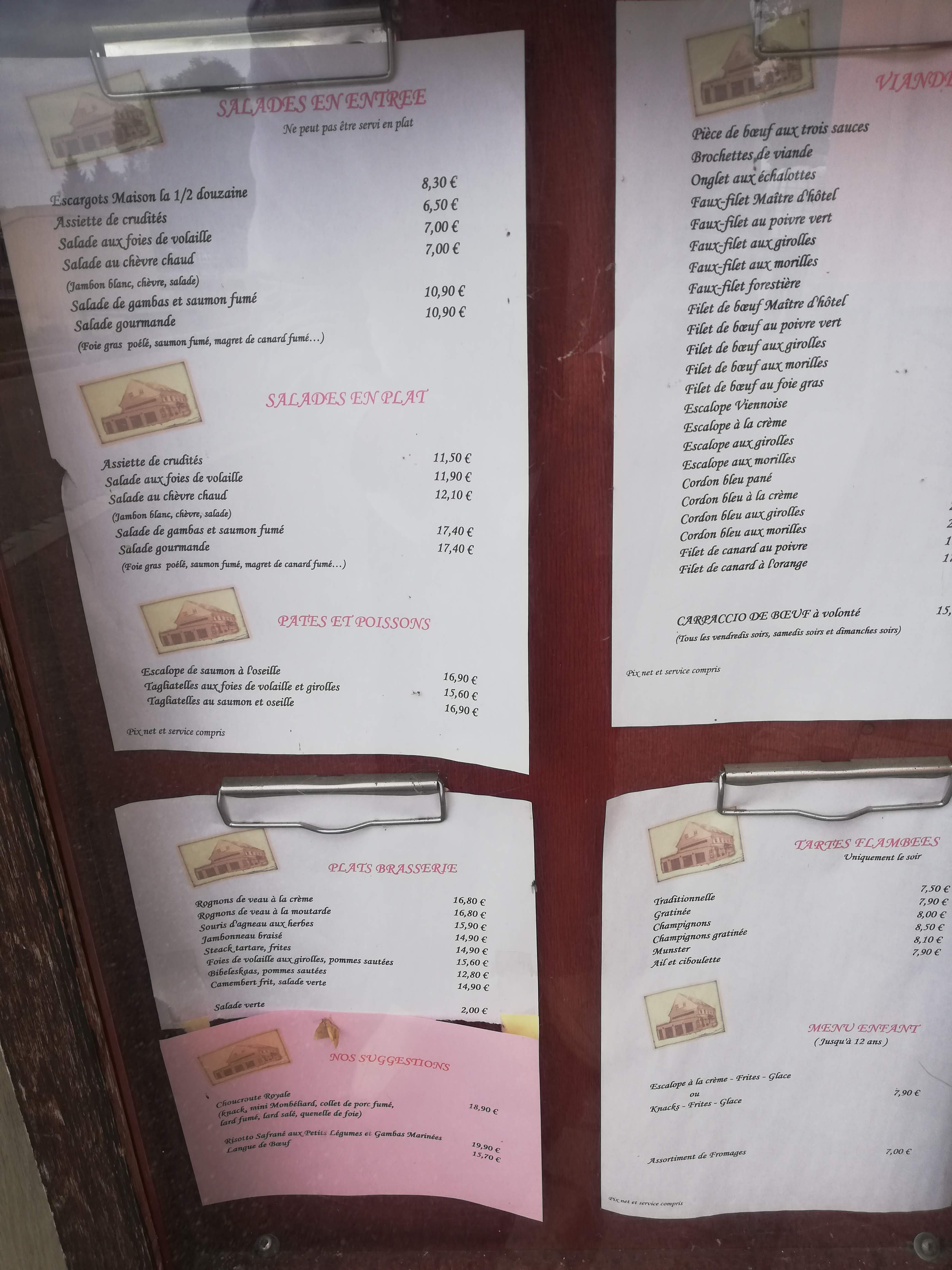 Plus de carte , plus de menu le dimanche uniquement des steaks ... filets de bœuf ... le restaurant c'est dégradé , a éviter devient doucement un café / bar et ATTENTION dans la cuisine , AUCUN cuisiniers ne porte le masque ... aucun respect envers la clientèle l'horreur !!! et la patronne nous dit je suis chez moi je fais ce que je veux ! nous avions mis nos masques en rentrant , assis en face de la cuisine nous avions bien vu que aucun des cuisiniers ne portait le masque puis nous sommes sortie fumer une cigarette et nous voulions voir se qui se passe si nous ne mettons pas le masque ! et voilà eux nous demandé de mettre le masque et la cuisine sans masque et nous n'avons agressé personne c'est plutôt la patronne qui est devenue agressive ! Sachez également que nous étions clients depuis très longtemps . Final