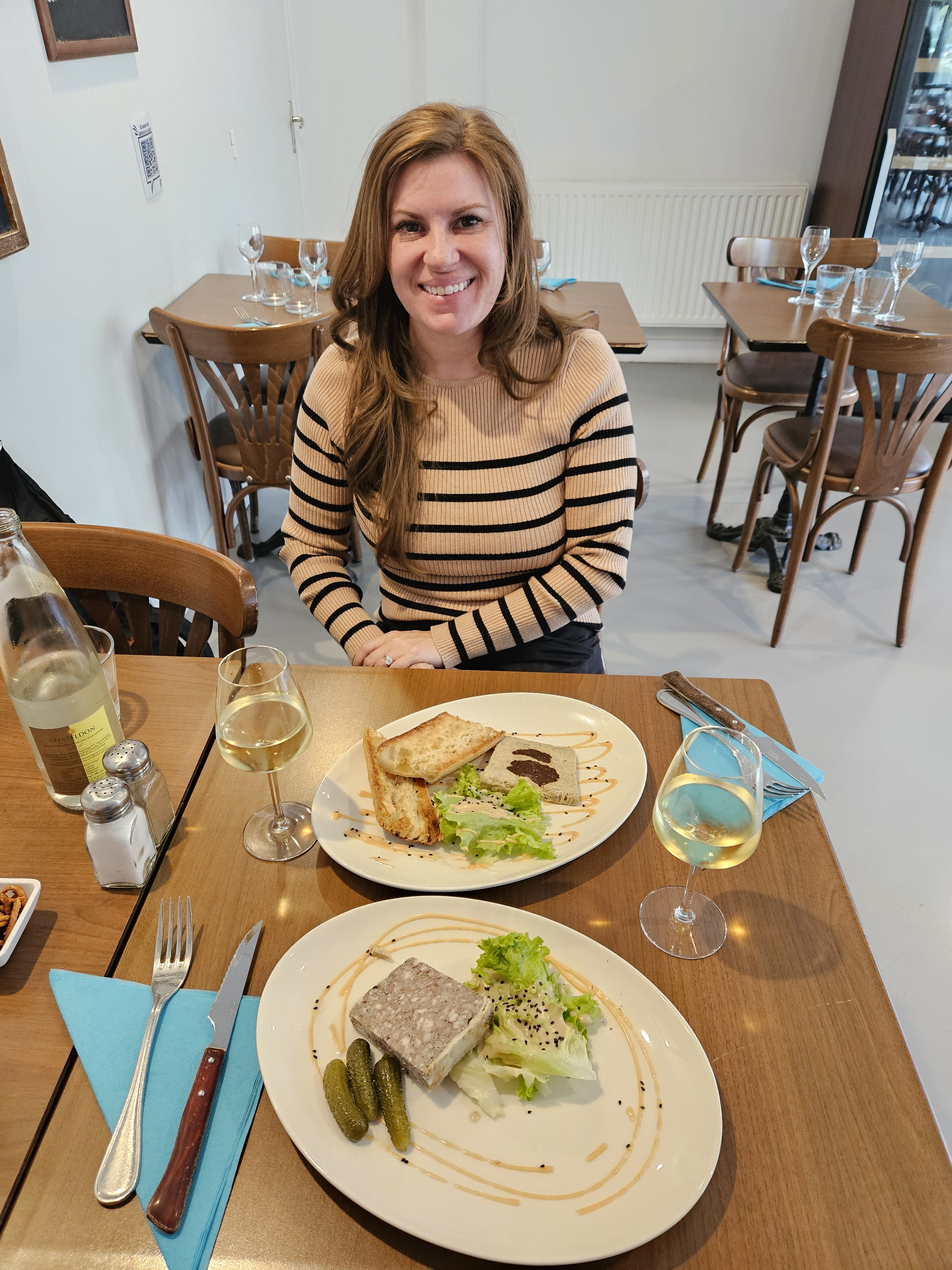 Nous avons fait une courte escale de 4 heures à CDG et avons choisi d'aller dans ce petit restaurant pittoresque situé dans la ville voisine de Tremblay, à proximité. L'endroit est très mignon et en plein centre ville près de l'église. Le menu était très français, avec d'excellentes options parmi lesquelles choisir. Ils font tout à partir de zéro et tout était vraiment bon. Ma femme a pris le Fois Gras de Canard et moi j'y suis allé avec la Terrine de Campagne. Les deux plats étaient délicieux et avec une belle présentation ! Notre serveur Marie-France était très sympathique, super attentionné et professionnel. Nous avons terminé le repas avec un bon digestif, notre préféré des Français ; Obtenez 27. La nourriture était excellente, rien d'extraordinaire et à seulement 12 minutes en Uber de l'aéroport !