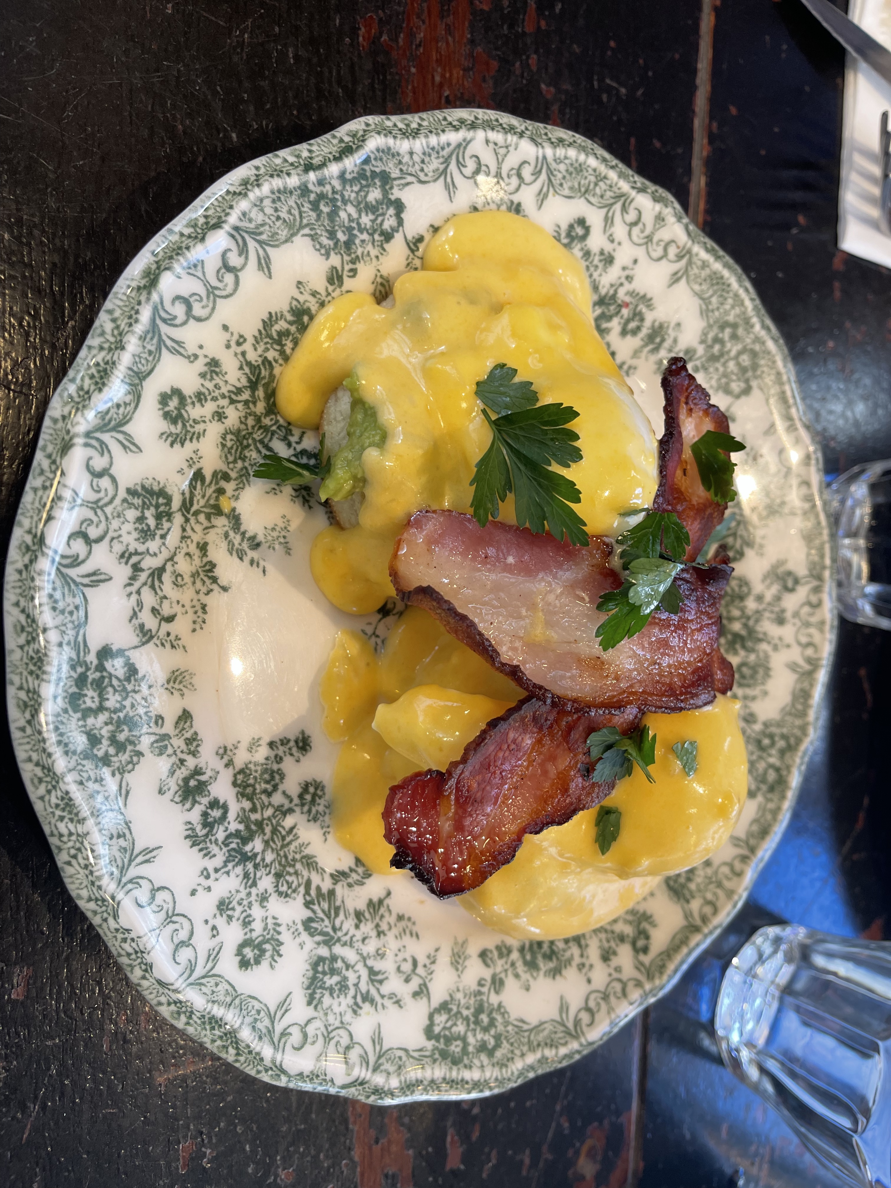 Œuf bénédict : super bon et très bien présenté. Le seul bémol c’est que j’ai trouvé qu’il y avait un peu trop de citron sur la saumon. La fin du plat était difficile. Les crêpes étaient succulentes, je pense que ce sont les meilleures de Paris à ce stade jsp comment ils les font mais un délice. La glace Berthillon était délicieuse, la noisette notamment. Il y a des options pour les végétariens comme le avocado toast qui était très bon ou les falafels. Le personnel était vraiment super sympathique. J’adore la décoration du restaurant.