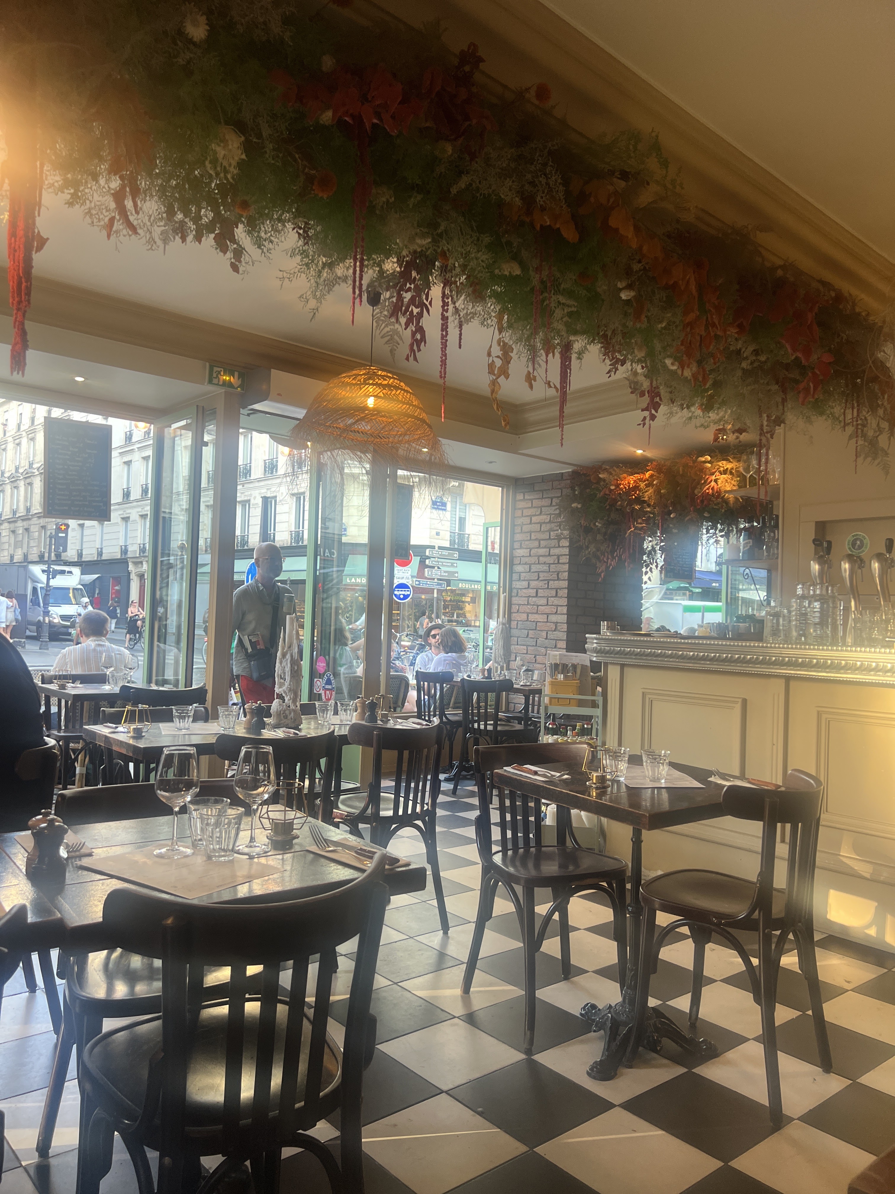 Service amical, grand choix au menu, restaurant propre et accueillant. Je suis revenu ici plusieurs fois au cours de la semaine dernière, principalement pour obtenir de l'Aperol Spritz (c'est l'été !) et du tartare de bœuf. Nourriture super fraîche et savoureuse, excellente opportunité d'observer les gens, venez pour le petit-déjeuner, le déjeuner ou le dîner. Vous l'aimerez là-bas!