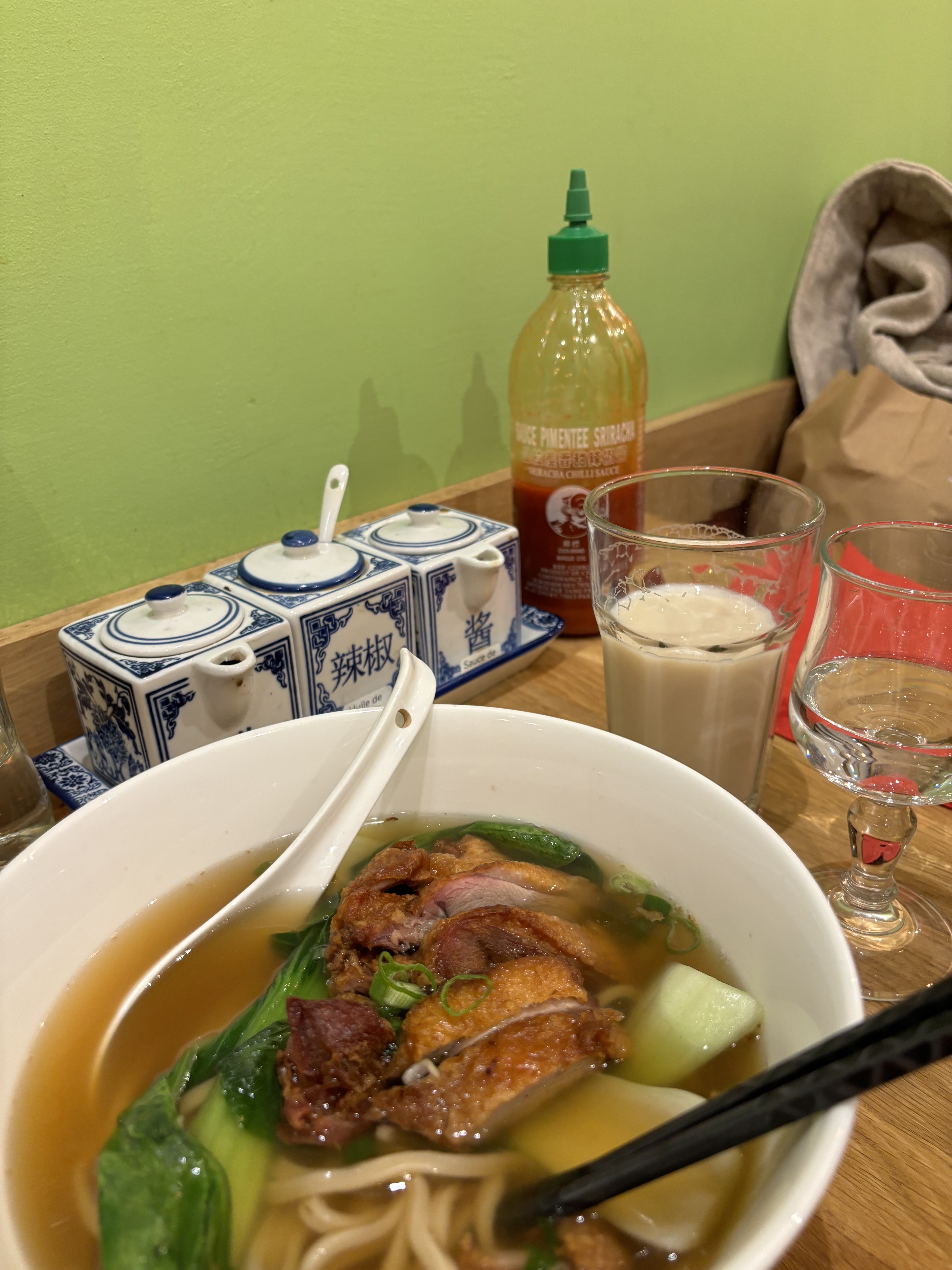 Service rapide et la serveuse et le serveur sont très sympathiques! la soupe de nouilles au canard frit est très bonnes! et c’est fait maison! Les portions sont généreuses. La déco est soignée et dans l’air du temps. Nous reviendrons ☺️